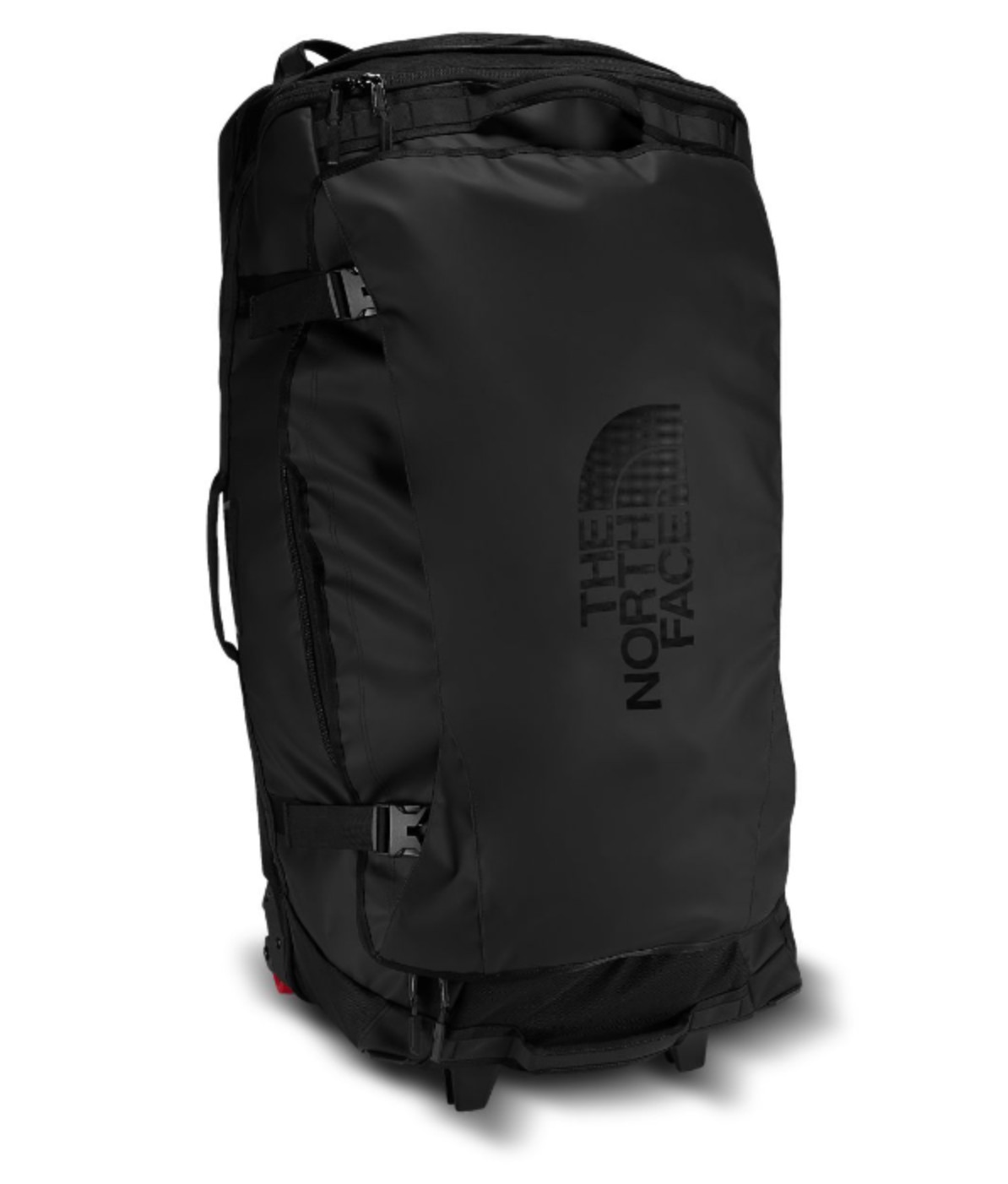 The only thing we didn't love about the most massive size (Rolling Thunder 36") is that it didn't feature an extendable handle. Instead, it features two angled grab loops that perform just fine and are much better than the previous versions that have un-angled loops. However, we prefer an actual handle, which gives the user more leverage and control. We understand the reason The North Face has designed this bag, which is to reduce weight on what is an already heavy duffel. However, this does affect a person's ability to manage the bag when it's fully loaded. The North Face Rolling Thunder, along with the other smaller sizes, does feature a super stiff, durable and comfortable extendable handle. The Rolling Thunder models come with a strap to help attach other luggage to the outside, which makes toting gear around much more manageable.