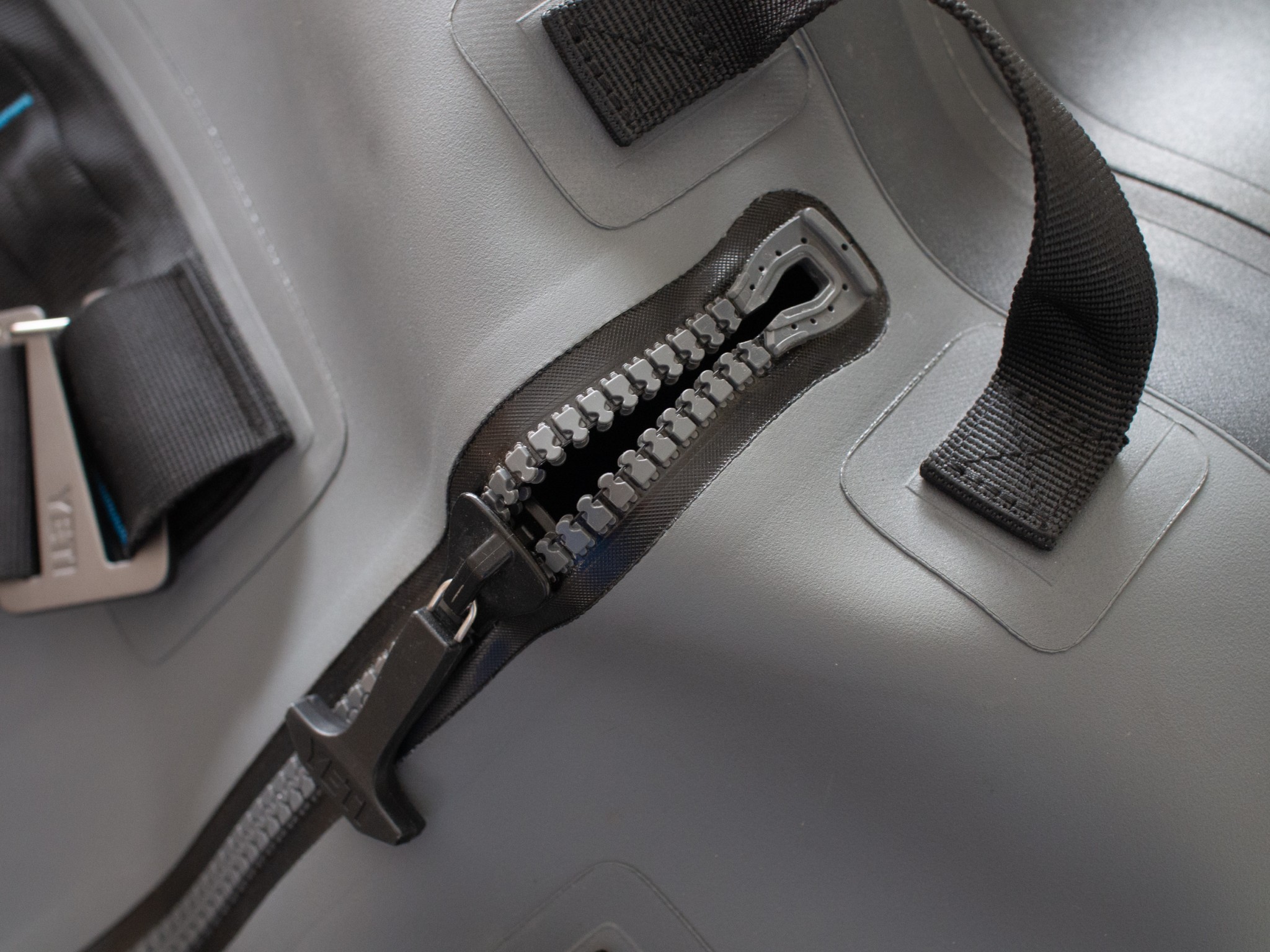 Of the major carry modes, Yeti has about half. What it lacks is easy briefcase-style handles and a long strap for one-shoulder carry. The backpack straps are the primary mode of transport, and they are comfortable and effective; it is the backpack straps that set the Panga apart from other zippered submersible duffels. In scouring the entire market, we did not find a submersible zip bag that carries like a backpack. In so many situations, this mode of carriage is beneficial.