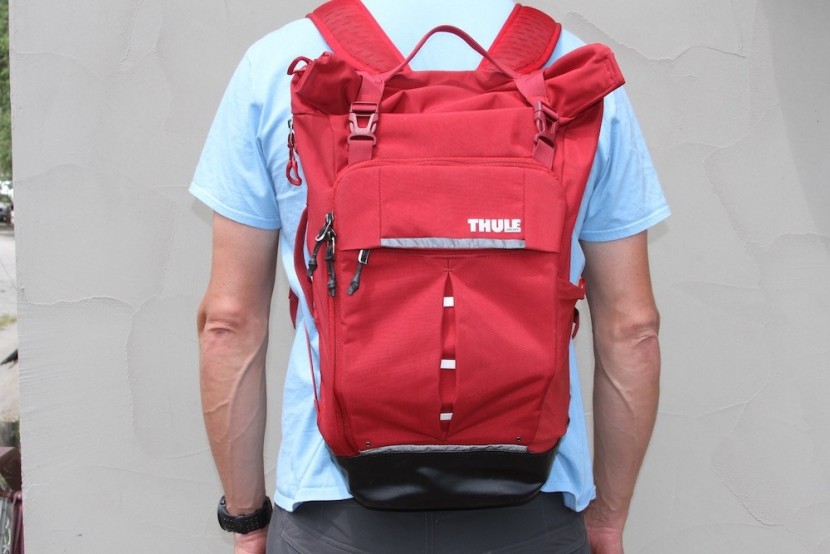 It bent and conformed to the contents inside, digging into our side and back uncomfortably. That said, while biking we like the fit, especially with a laptop loaded at the back.