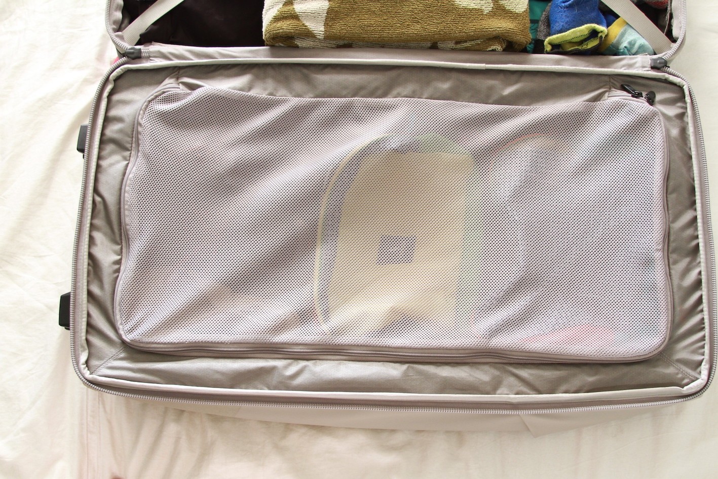 The Stratoliner also comes with a seperate cube. It has mesh so you can see inside and is ideal for toiletries, dirty clothes, or even a pair of shoes.
