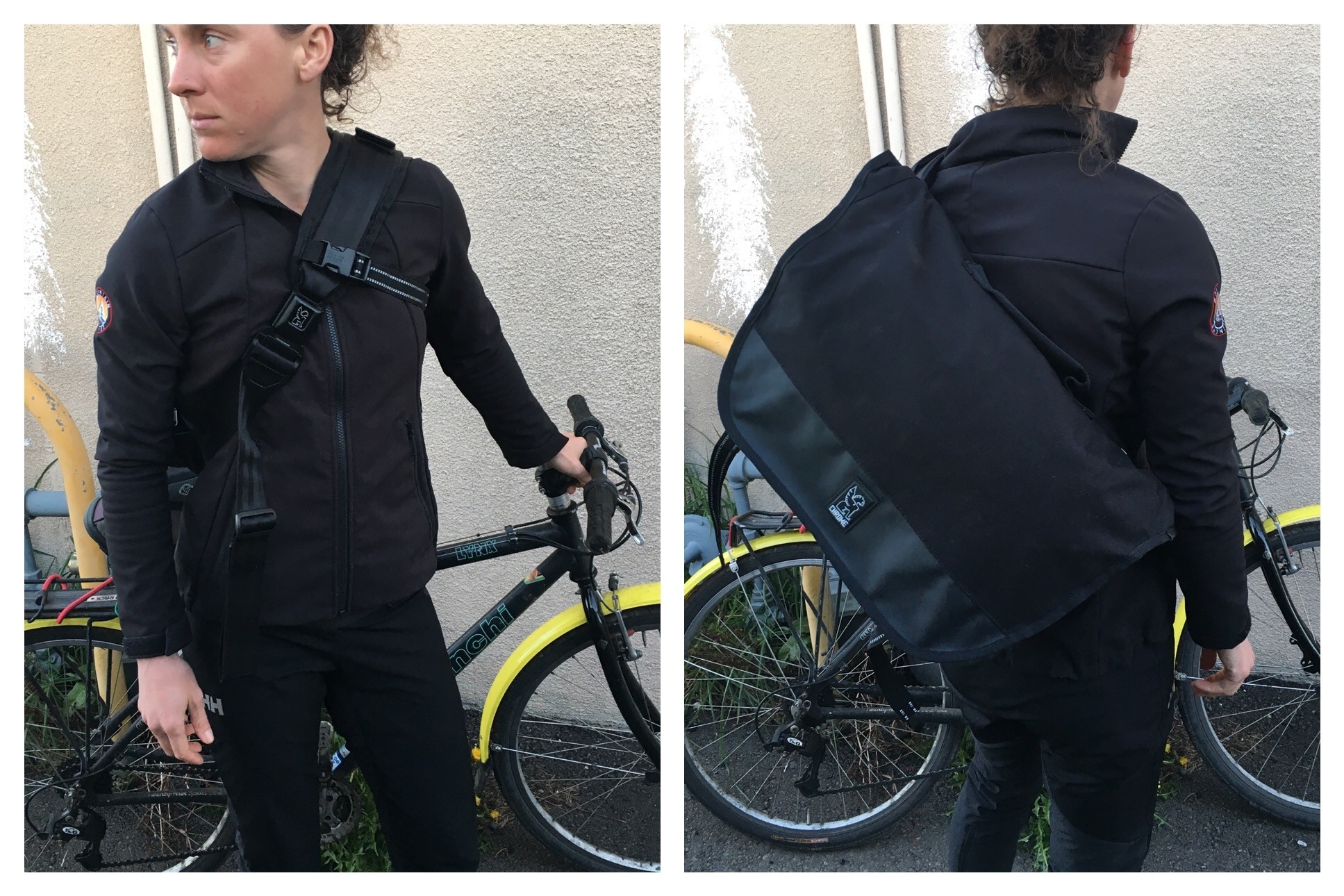 Perhaps one of the biggest concerns with this bag was how it limited visibility to the left on our bike commutes since the pack protrudes up and over left shoulder (which is where you often glance to look for traffic when merging). The pack as sewn cannot be switched to right shoulder carry; it is not an “ambi-carrier.”