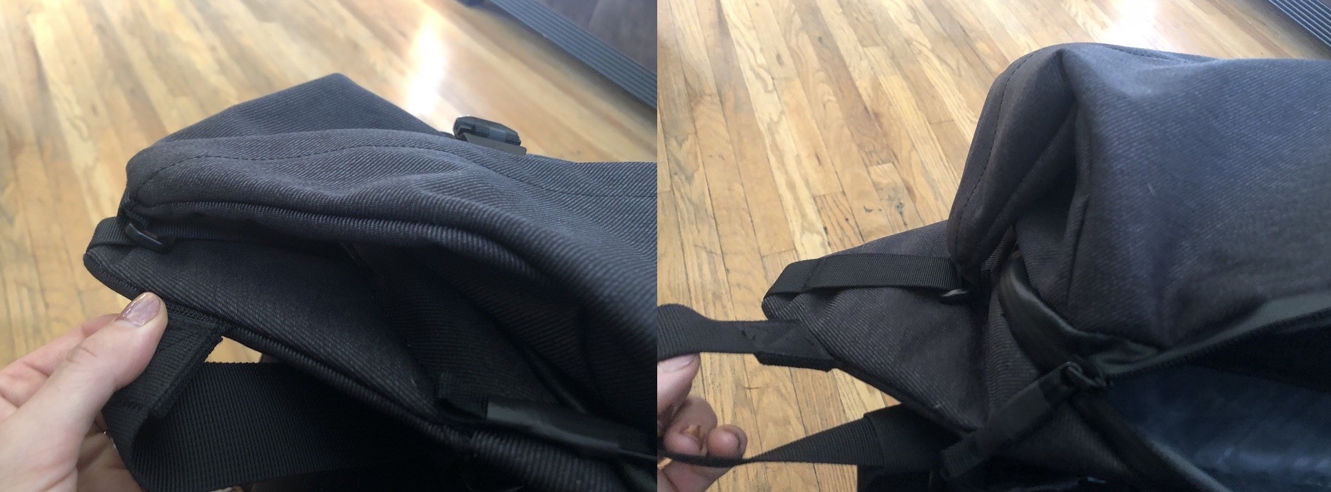 When the Vale is packed super full, the elongated shape can poke into the lower back a bit, but this only happens when standing upright and walking, while cycling it's as comfortable as can be. For those that want to get crafty, you can also wear it as a fanny pack because it's so narrow, though it's not really meant for that and is only comfortable when not overpacked. The original version of the Vale sported the classic Chrome seatbelt buckle closure, which was easy to clip around the waist or shoulder. This updated version moves to a slide buckle that doesn't separate into two halves, something many people miss. One of the benefits of this slide system, though, is less hardware poking into the front of your chest and no worry of the bag dropping to the ground with the push of a button.