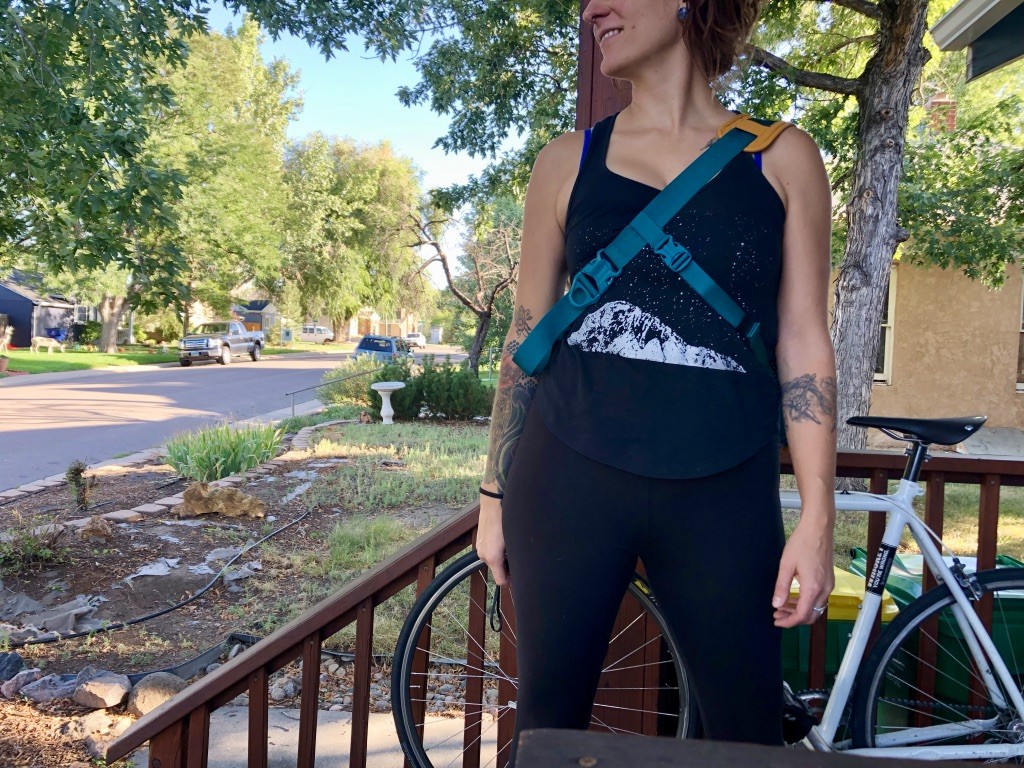 The Chuspa has a lot of problems in the comfort department. It's very soft and flimsy, so when it's packed heavy or full of sharp objects like textbooks, your body will feel it. Despite this, it does feel pretty decent when worn on one shoulder casually. Worn crossbody, the stabilizer strap helps cinch everything tight to the body, though in this position there is a noticeably boxy-feeling and the bag sticks out from the body quite a bit — it's not form-fitting like many of the other bags in this review. It also hangs quite low, even on longer-torsoed individuals and with the strap as short as it will go. And the strap itself is hardly padded: it's made from thin webbing, and the shoulder pad is thin and chintzy.