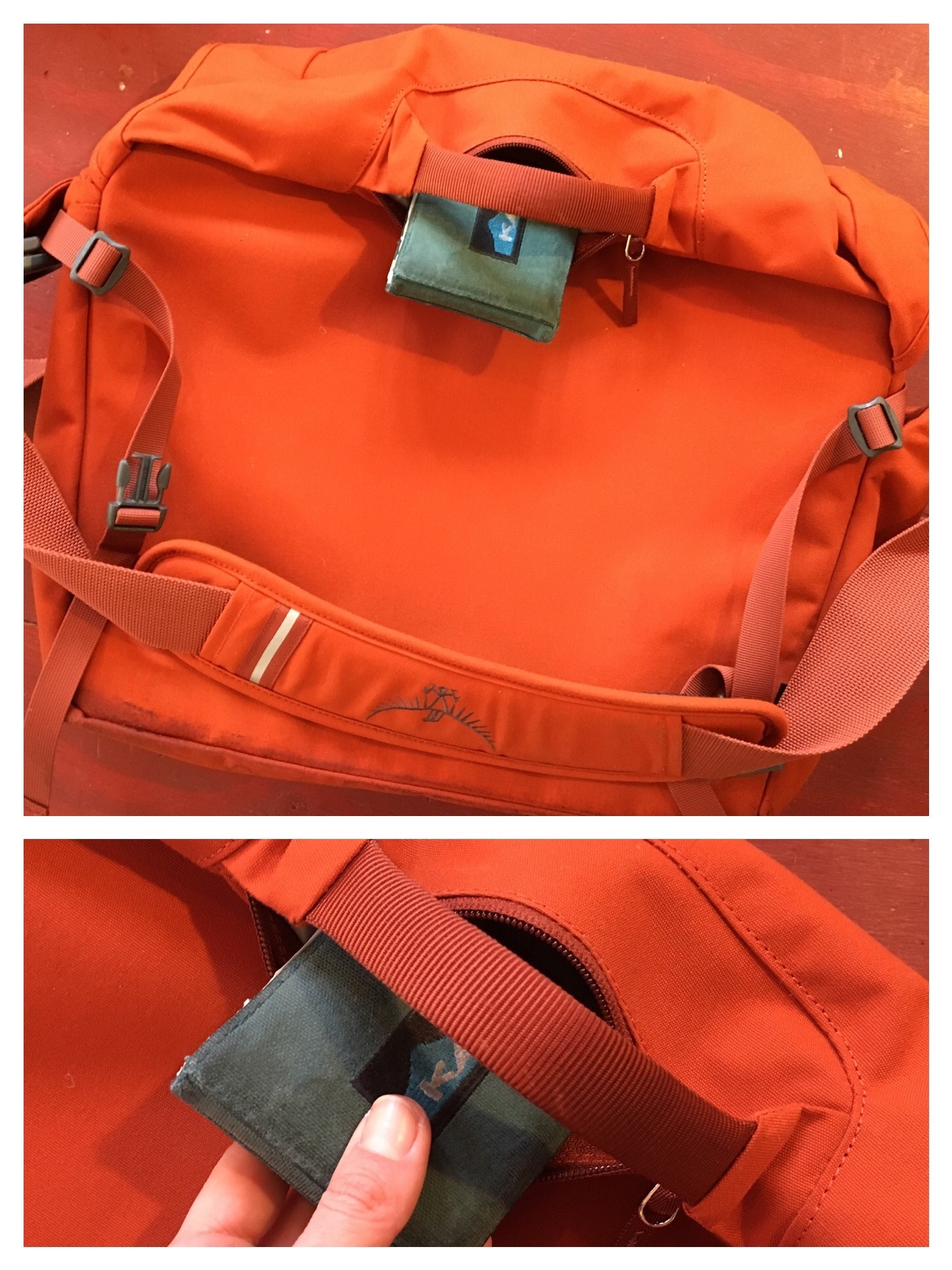 One small but impressive detail was the internal handle that allows you to pick up and move the bag around easily when the flap is open. Most messenger bag manufacturers have not figured this out. It turns out that we scoot and shuffle our open messenger bags around a lot, whether at home, at the office, or getting it out of the way while studying at a busy coffee shop, so we used this little handle a lot. The Patagonia Black Hole has a plastic buckle that secures your electronics, and when clipped, we could use this as a handle in a similar fashion, but it is not as easy to locate, nor explicitly designed for this use.