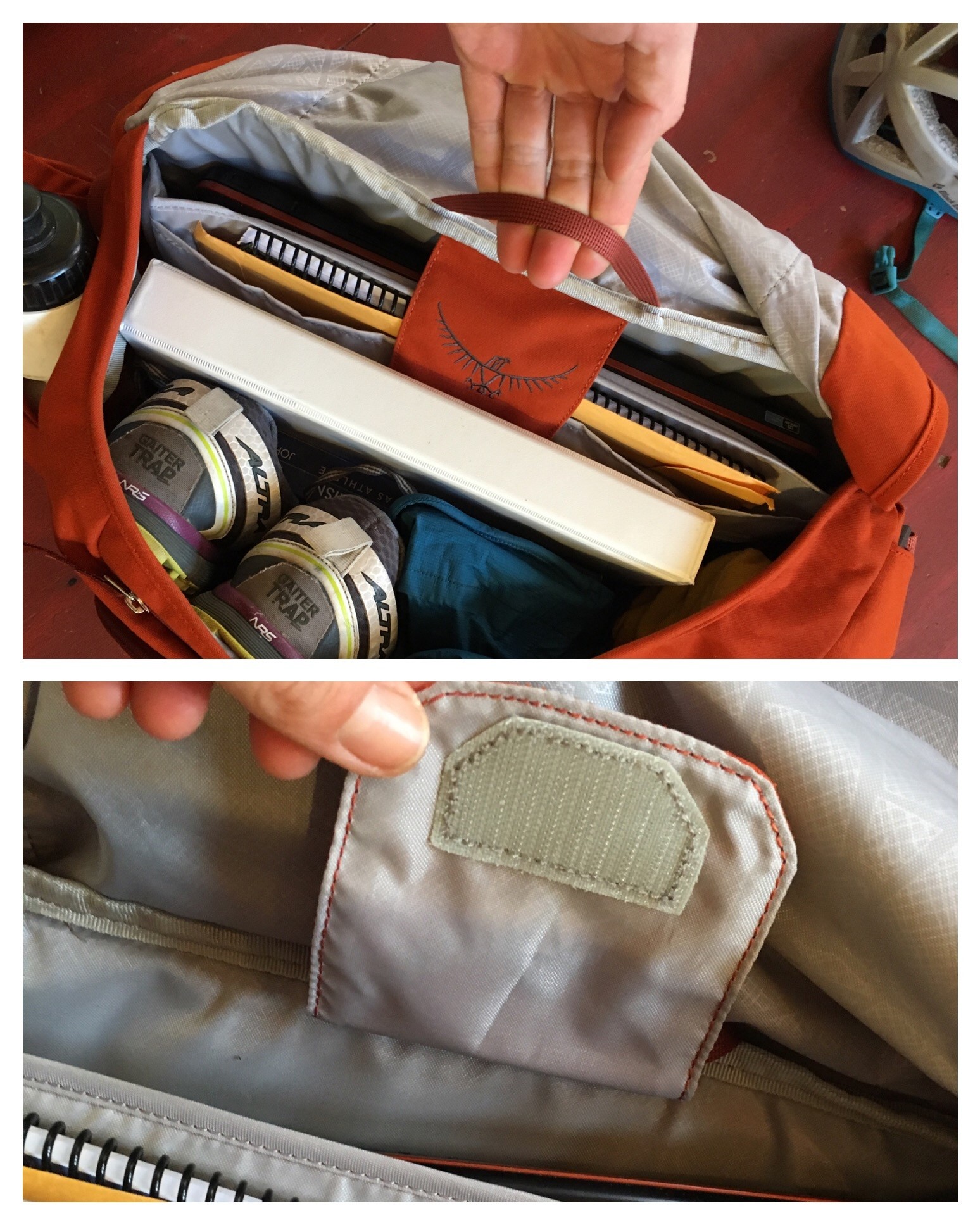 Osprey shines in this category as well, with only a couple hitches: the buckle that secures the main flap is a bit stiff and hard to pinch when reaching down from the top of the bag, and often we would swivel the bag around to open it from below. This was especially problematic with pumped forearms after long climbing gym sessions.