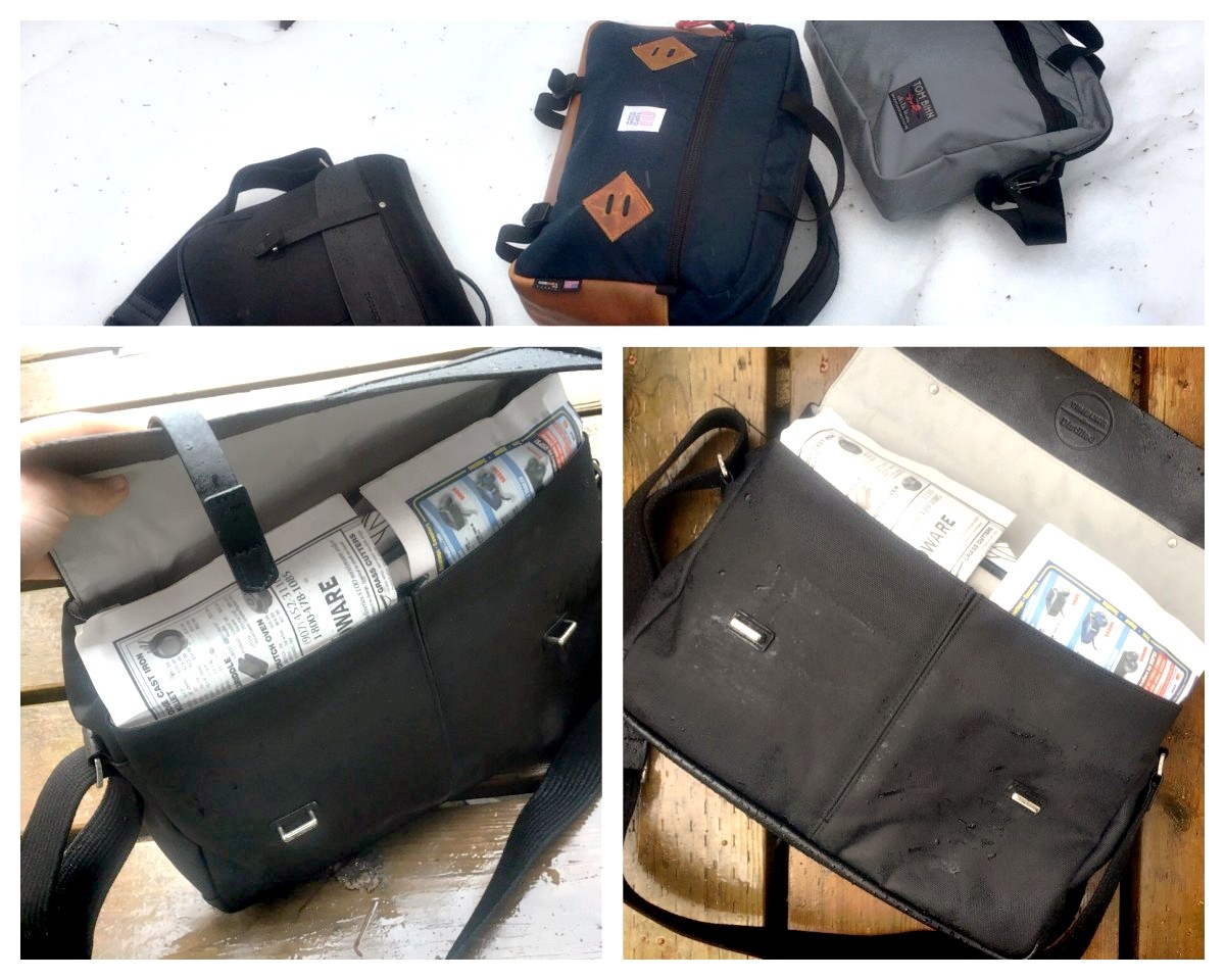 The main compartment is also relatively waterproof. The flap closure ensures water doesn't leak in from the top (as in other messenger bags with a zipper on top), and the edges fold in in a way that pinches them closed and keeps light precipitation from getting inside the bag. This makes a great laptop bag and can be thought of as a soft briefcase.