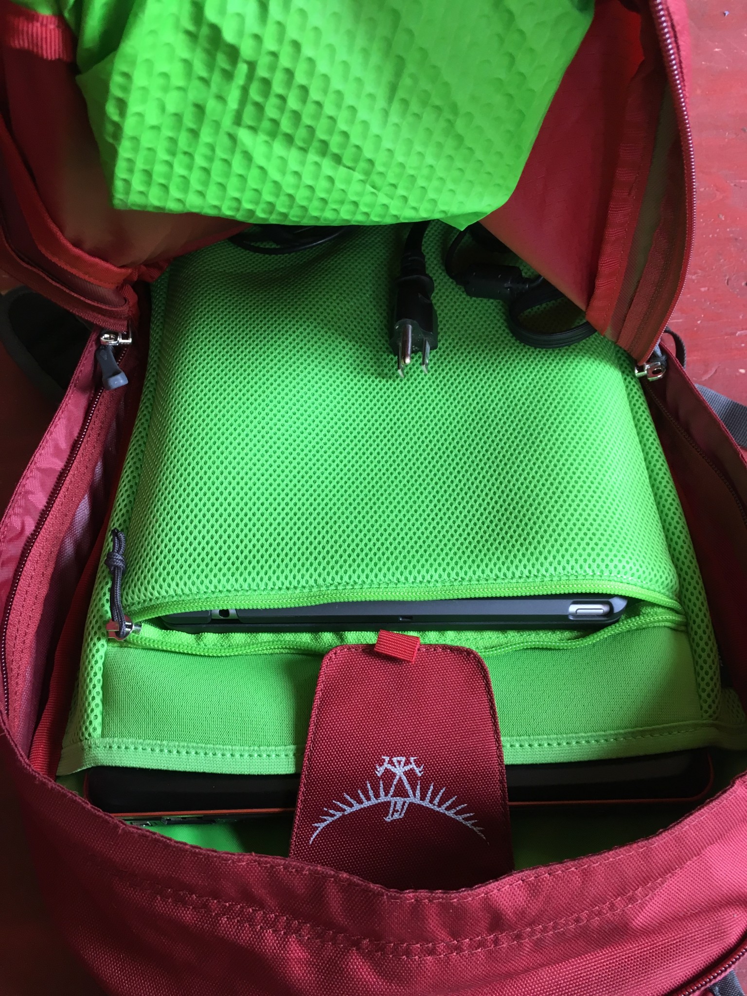 The daypack has padded laptop and tablet sleeves, so if you use the daypack as your carry-on, it is very easy to pull out your electronics at the security checkpoint.