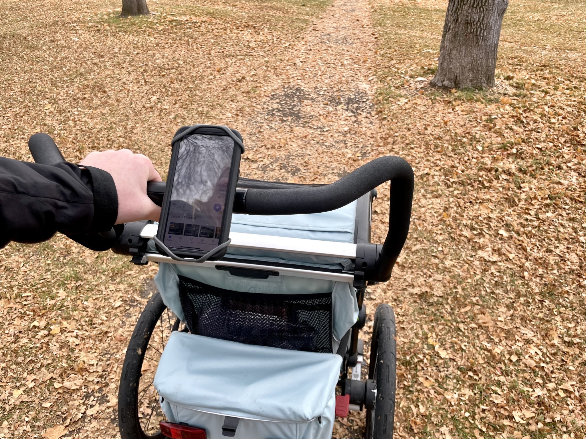 Our testers strapped mounts -- including the Nite Ize Wraptor shown here -- onto strollers to see how well they performed. Credit: Madison Botzet