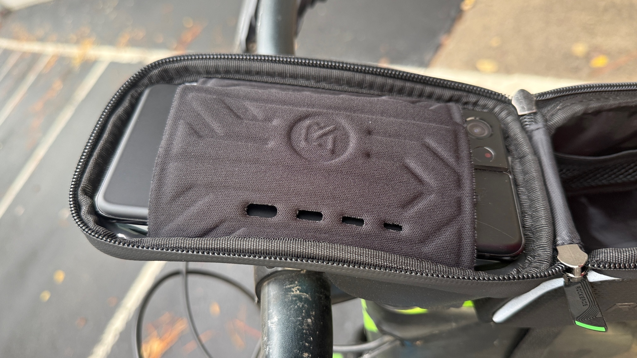This mount is not compatible with all bikes. It would not fit on either our step-through ebike or our cafe-style ebike, which features a wide top tube and battery. You need a more standard top tube. If your top tube is too narrow, this bag will likely slide around, especially when loaded. The main challenge with this style of bag is that not all of your phone's features can be easily accessed, especially the home screen. On our iPhone, we had to feel for the home screen button awkwardly. On a Samsung phone, it was hard to reach the very bottom of the screen and swipe up. Another challenge with this bike is the position of the phone. Unlike bar mounts, which are positioned out front and allow you to keep a better eye on the surrounding terrain, this bag has you looking almost straight down. We also had a durability issue with the stitching coming undone at the velcro that secures your phone. Luckily, we caught this right away and were easily within the return window.