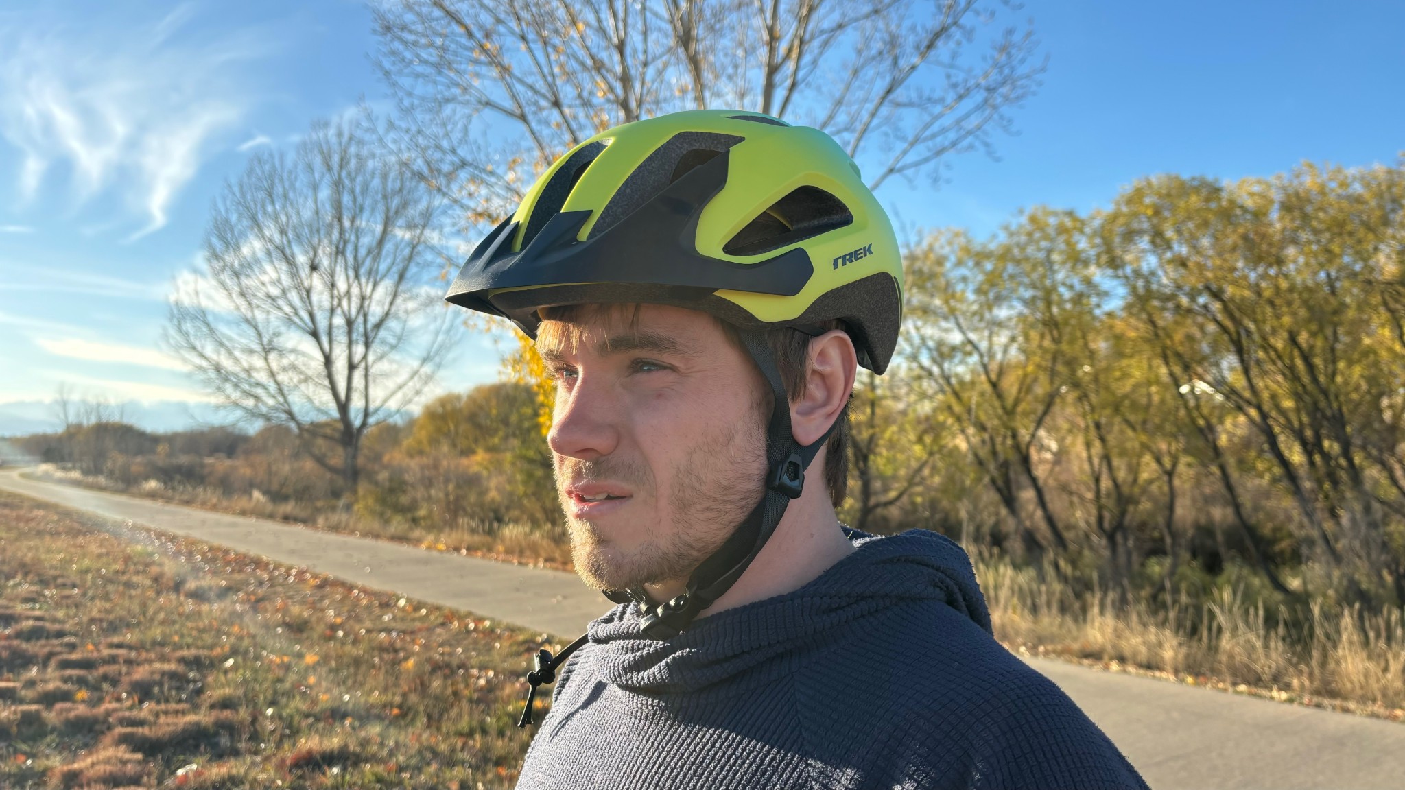 The Trek's dial on the back is very easy to grab thanks to its position below the helmet. It has a rubber feel with little notches, so we could easily grab and adjust it. However, both the Trek and the Smith felt snug and comfortable, so we didn't need to make many adjustments during our rides. Much of this is thanks to the fit system, which extends below the helmet on the back of the head. It is sturdy enough that it doesn't ride up the head, which also allows for a secure fit.