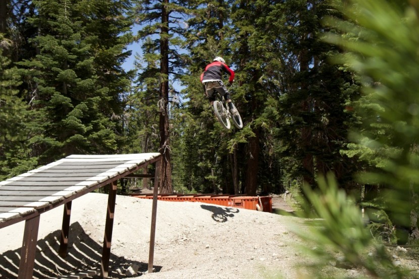Downhill biking simply occurs at faster speeds, and if you're in a bike park, using lifts gives you far more descents in a given day than if only pedaling. Credit: Zach Lovell