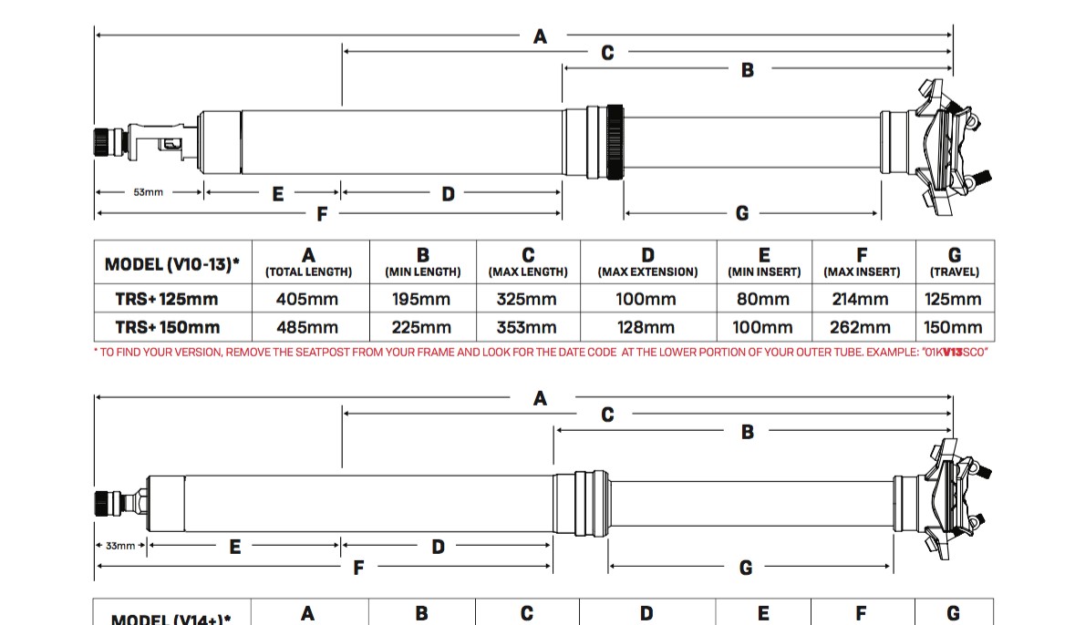 One of the most important and easiest measurements to find when selecting a dropper post is the seat tube diameter. Most models are offered in the most common seat tube diameters of 30.9mm and 31.6mm. A few are also offered with a 34.9mm diameter. It is of the utmost importance to purchase a model in the diameter that matches your frame's seat tube. This is easily measured, or you can find it by searching your bike's model and specs online.