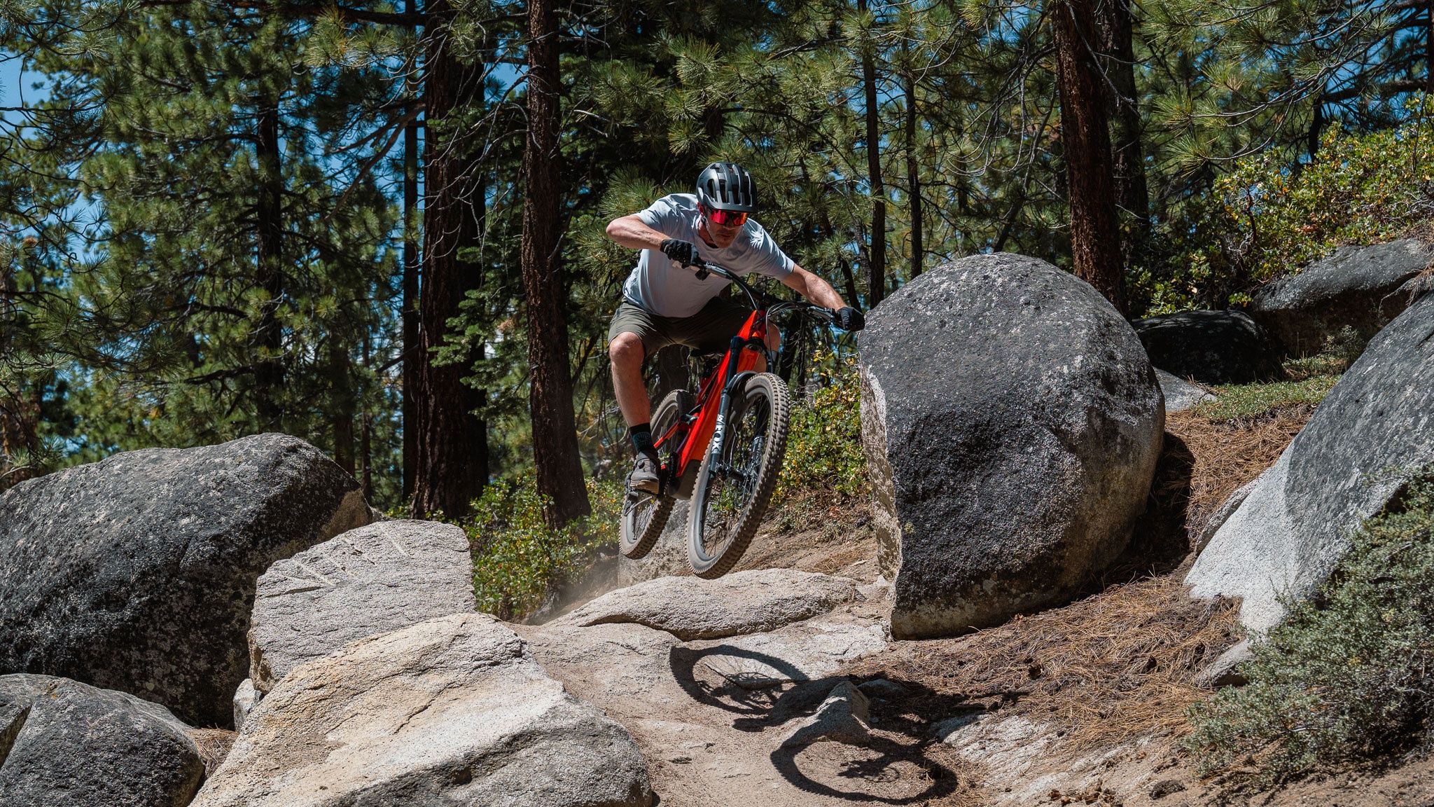 There are many places in the U.S. where you can legally and responsibly ride e-MTBs and take it from us; they are a heck of a lot of fun. We recommend checking with local land management agencies and other resources to determine where electric mountain bikes are allowed before hitting the trails. We know that you can ride e-MTBs on any trails that are legal for motorized use, so we took advantage of the wealth of OHV trails in the greater Lake Tahoe area for our testing purposes.