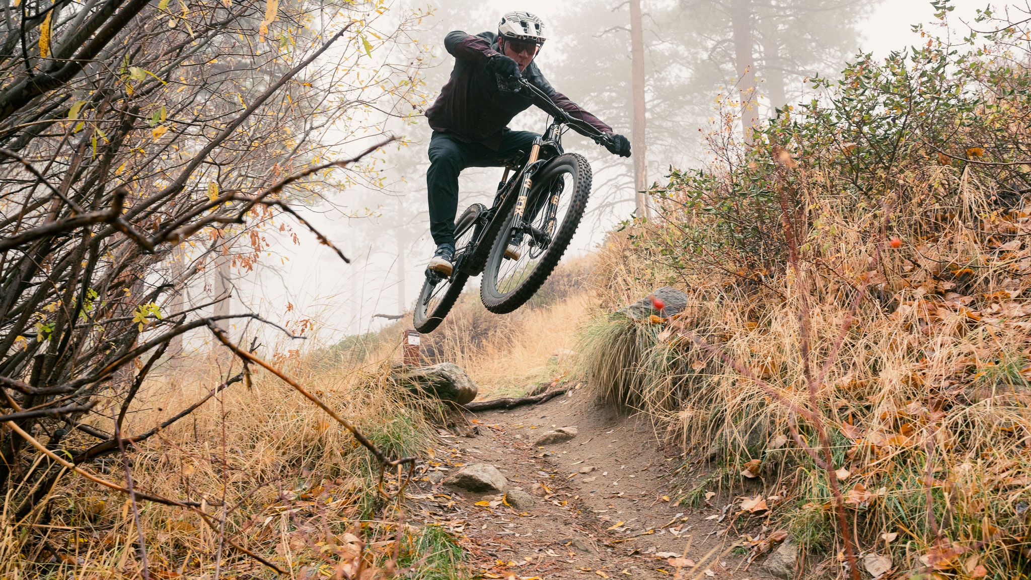 The FACT 11M carbon frame and Fox suspension work well together to provide a comfortable and responsive ride. This build feels like the sweet spot of performance for the dollar; Specialized offers an alloy model, but it's a few pounds heavier and not priced significantly less. We also tested this bike with a 29" rear wheel, giving it a more efficient but less rowdy feel. At just over 40 pounds, we loved how lightweight this bike feels, allowing us to ride without power and still have a quality ride.