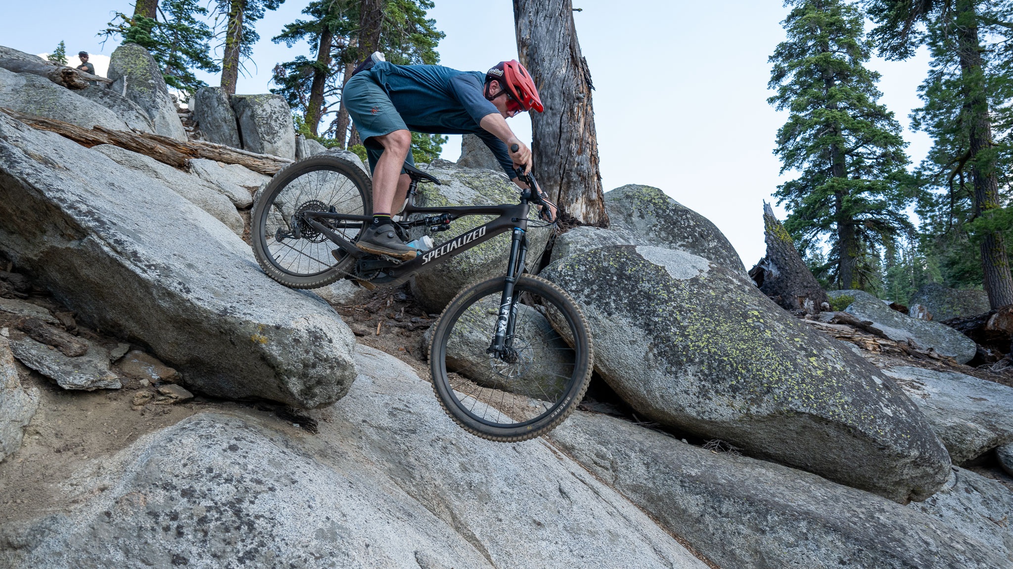 In the end, the Trek Fuel EXe proved to be a tester favorite, offering a versatile downhill performance that feels “a lot like a regular trail bike.” The Exe is the lightest and proved the most nimble and agile, yet it still managed to be confident and stable at speed. Its 140/150mm of travel gives it capability and playfulness; it's not the most aggressive bike, but it's easily the best handling and normal feeling of the bunch. The full-power Turbo Levo Comp was our other favorite on the descent. With 150/160mm of travel, well-balanced weight, and responsive handling, the Levo can handle just about anything that comes down the trail with confidence and composure. Additionally, the highly adjustable geometry allows the rider to dramatically alter the bike's character and handling to suit their style, terrain, and preferences. You decide how you want the Levo to ride.