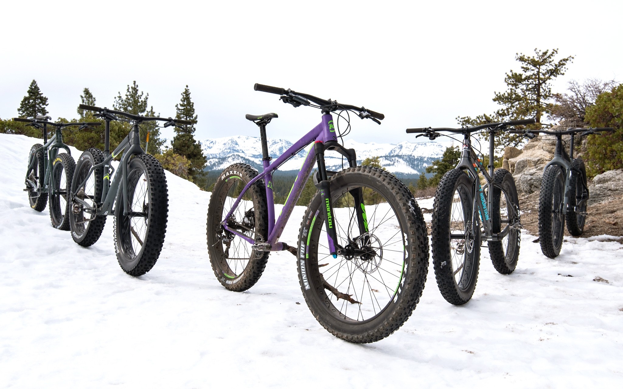 The width of the tires is the primary defining feature of a fat bike. Most fat bike tires range in width from 3.8-inches up to 5-inches. Generally speaking, the wider a tire is, the more floatation and traction it will provide. Likewise, the narrower a tire is, the more “normal” it will feel when riding dirt or regular trails. All fat bike tires have lots of girth and air volume so you can run very low tire pressures, less than 10psi, which further helps to enhance floatation and traction on soft surfaces. If you are exclusively riding on snow, a fatter tire will generally be a better choice, whereas if you plan to ride just dirt or a mix of dirt and snow, a narrower tire will likely suit you better. Fat bike tires also come in a huge variety of tread patterns for varying conditions and to suit rider preferences. Some fat bike tires are even stud-able to enhance traction on extra firm or icy surfaces.