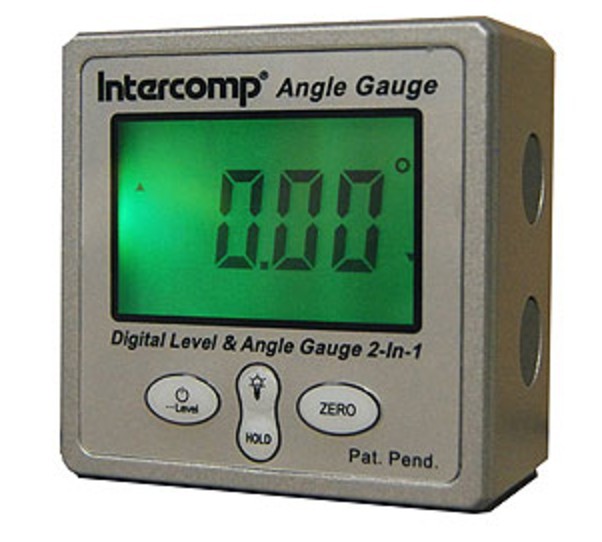 Head Tube Angle - We find the head tube angle by placing our Intercomp digital angle gauge directly on the front of the fork stanchion. We confirm by measuring the fork lower legs as well, being careful to avoid any bumps or ridges in the leg. We double check our measurements with the digital protractor goniometer.