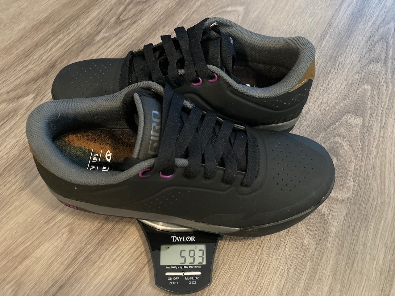 It is easier to spin the pedals with a lighter shoe than a heavy one, and your feet will become more quickly fatigued with a heavier shoe than a lighter one. The best shoes balance weight, grip, protection, and rigidity. To test weight, we place each pair of shoes on a kitchen scale and weigh them in grams; we also note the size of the shoe tested for reference.