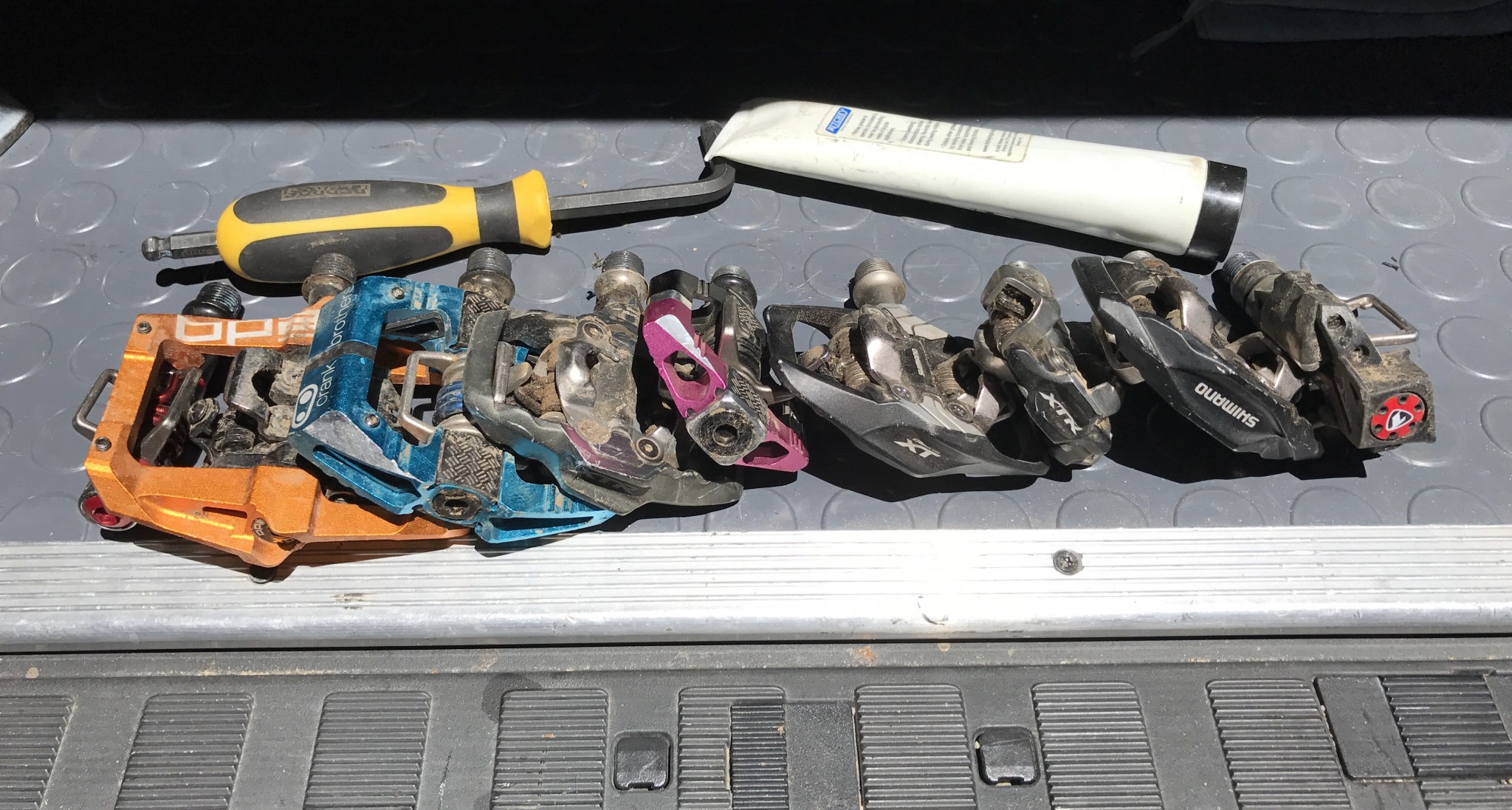 To test these nineteen pairs of clipless mountain bike pedals, we rode in rain, sun, mud, sand, snow and perfect loamy single track. We tested in several different types of mud, ranging from coffee to Nutella. We rode them on hardtails, trail and enduro bikes using ten pairs of shoes with male and female testers. We swapped cleats countless times and got fast at moving pedals from one bike to another.