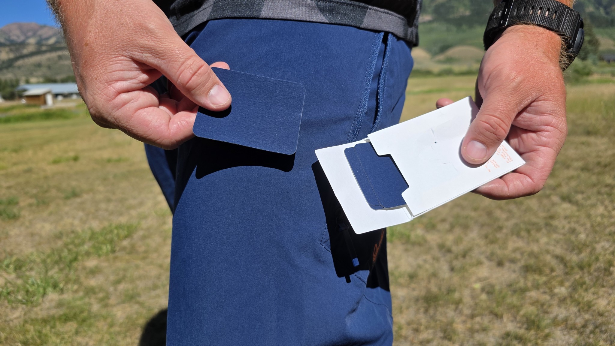 The Rapha Trail Shorts include a unique color-matched iron-on patch kit, allowing you to repair your shorts yourself, if necessary. Credit: Kolby Anderson