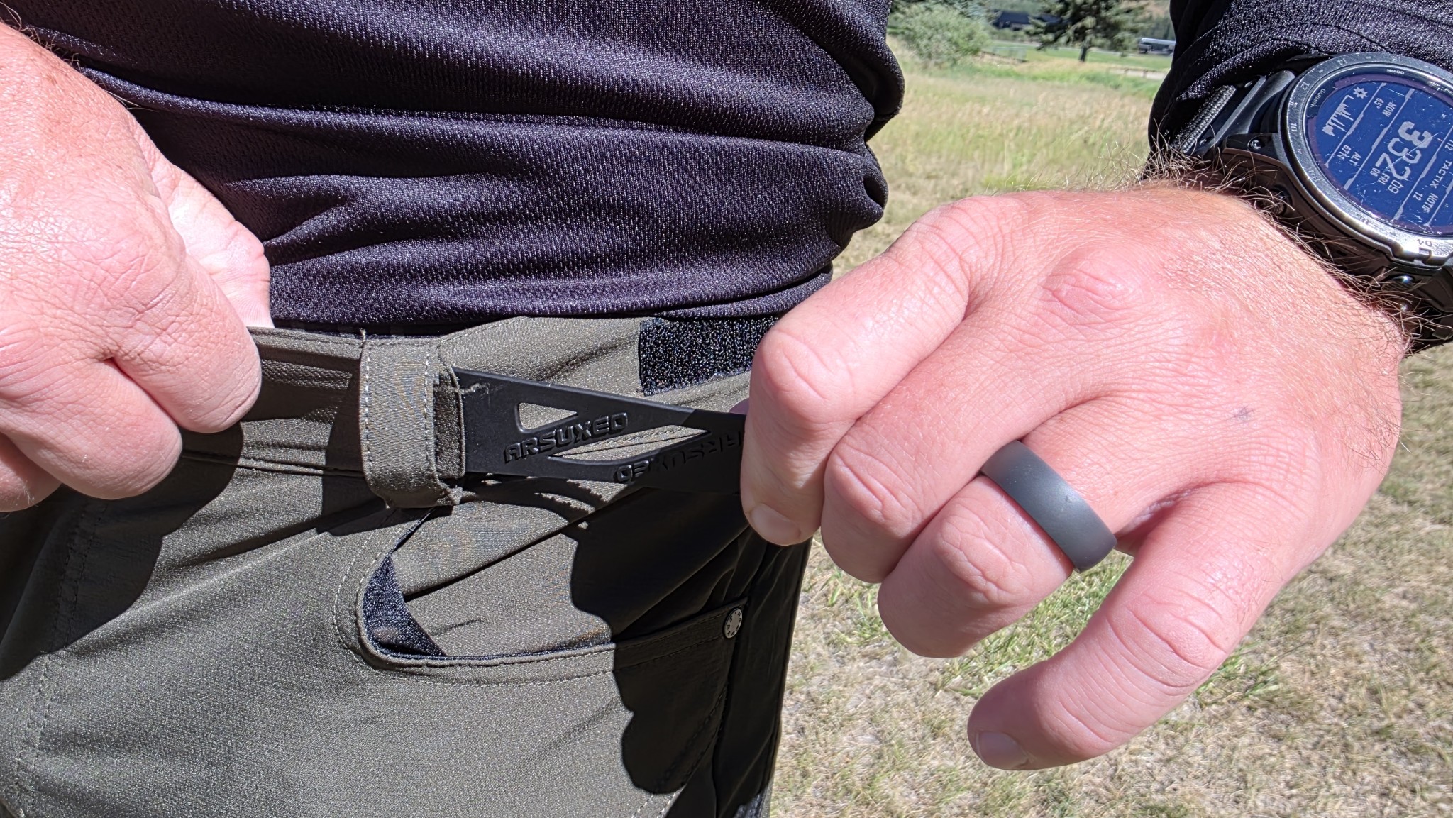 The waist adjusters of the Arsuxeo Loose Fit 1903 are poorly designed and do not allow for any useful adjustment. Credit: Kolby Anderson