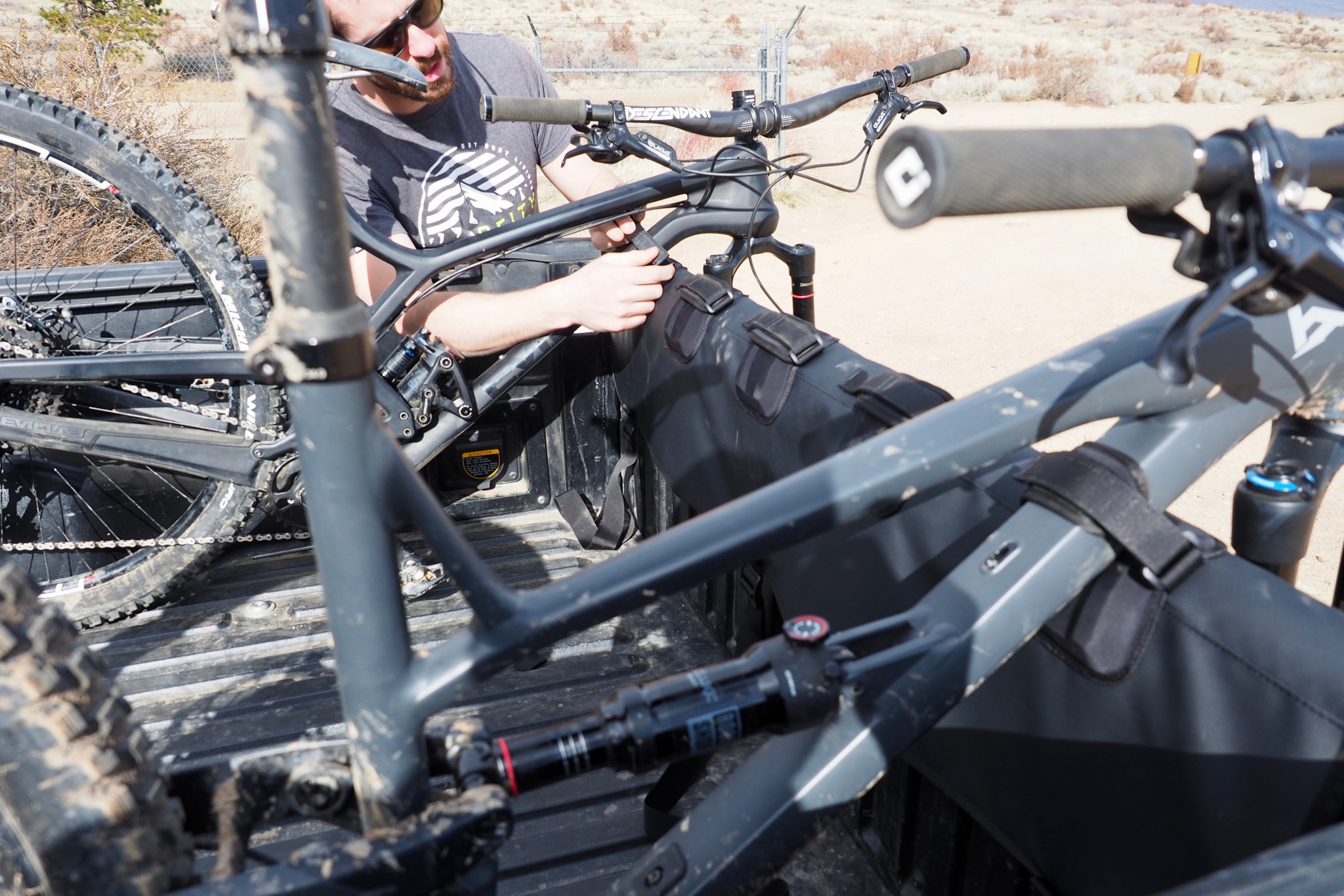 Review author Pat Donahue spends a lot of time riding mountain bikes. Pat has been riding and breaking mountain bikes for close to two decades. He was a full-time mountain bike tester and reviewer prior to owning a bike shop in South Lake Tahoe, CA. He has loads of experience hauling mountain bikes around to trailheads and running shuttle laps, and he's used dozens of bike racks, tailgate pads, and other contraptions to get bicycles from point A to point B. He prefers an easy, hassle-free option where he doesn't have to worry about his revolving door of bicycles tumbling down the freeway. Pat was joined by our Senior Mountain Bike Review Editor, Jeremy Benson in testing the pads in this review. Benson is a proud truck owner of more than two decades who spends the vast majority of his days testing new mountain bikes. Daily trips to the trailhead or shuttling for test laps, he is constantly loading and unloading bikes on all manner of bike racks and tailgates.