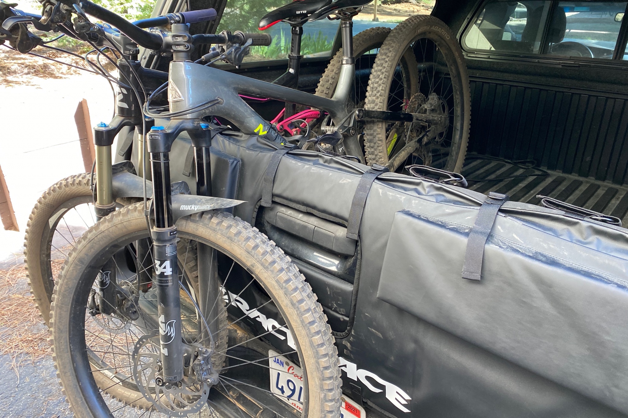 The GateMate Pro has a few shortcomings worth mentioning. For starters, the bike securing straps are excessively long. We used multiple carbon trail bikes with top tubes of average diameter, but the straps were so long that the velcro patches barely made contact after being passed around the frame, even when looped over the top tube. Second, the straps aren't secured to the pad, so if you leave them open, they could easily blow away while driving. Third, the pad itself is also pretty large. When testing the smaller size on the tailgate of our 2009 Tacoma, we maxed out the straps and would've liked to have tightened them even more. But if your tailgate is slightly taller or thicker, as many modern trucks are, we don't think this will end up being an issue. Those shopping for a small or midsize truck may find the Fox Racing Tailgate Cover more suitable.