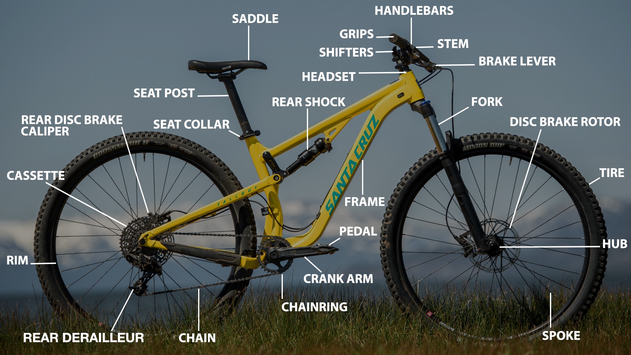 - Disc Brakes — Disc brakes are ubiquitous on modern mountain bikes, composed of a hub-mounted metal plate, i.e., rotor, gripped by mechanically or hydraulically operated calipers. SRAM brakes are known for more gradual, modular engagement. High-end Shimano's are known for sharp engagement and power. Pay attention to the size of the rotor, as a larger one will give you more braking power.
