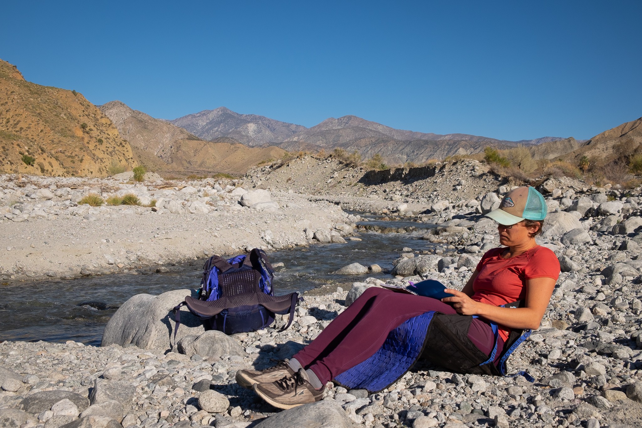 The Crazy Creek Hex 2.0 PowerLounger is a quick and easy chair to set up for a mid-day break and is far more comfortable than sitting on these rocks. Credit: Elizabeth Paashaus