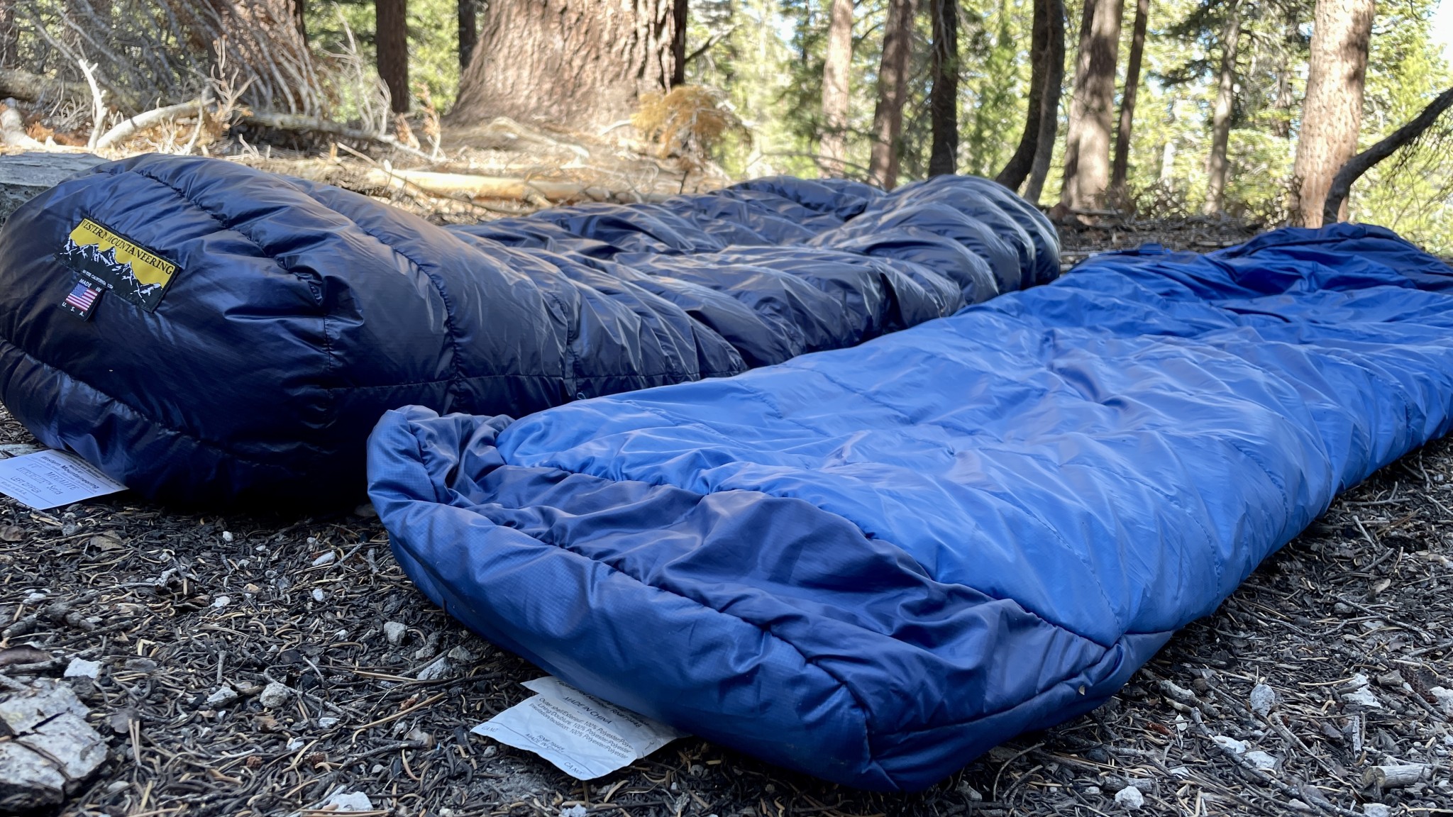 backpacking sleeping bag - ultra-premium loft on the left, regular loft on the right.