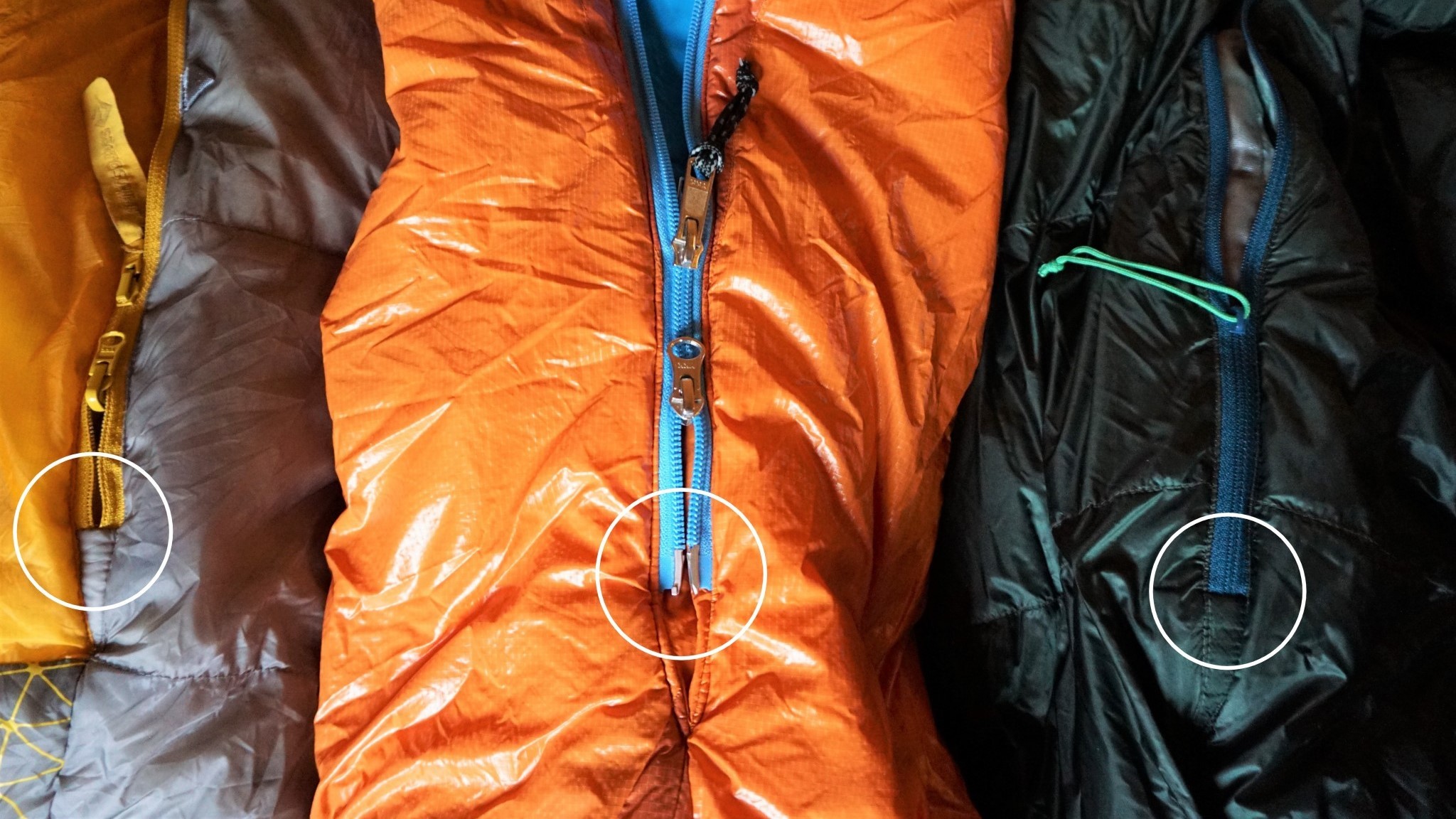 The Feathered Friends bags that we tried feature a Y-shaped zipper slide and an internal strip of flexible plastic to prevent the zipper from snagging.   Credit: Jack Cramer
