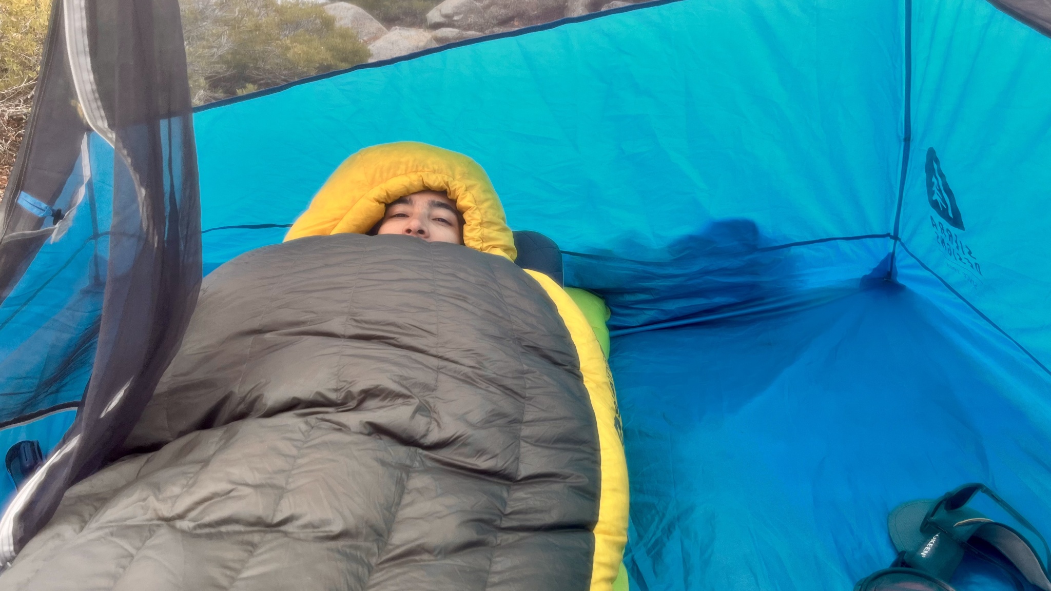 We slept soundly thanks to this pillowy, warm, and spacious bag.   Credit: Elizabeth White