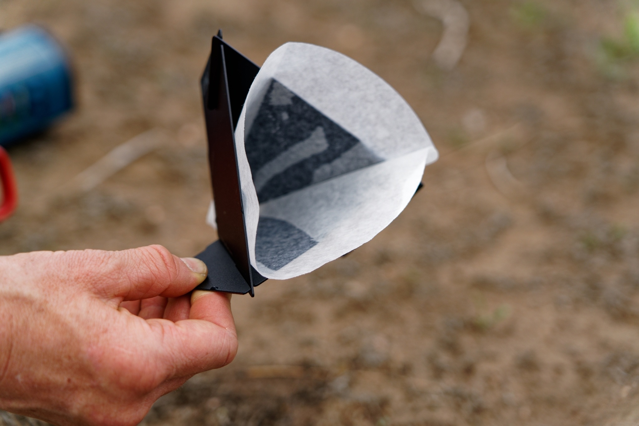 French presses are the method many of us are the most familiar with in our home kitchens. Almost everyone who drinks coffee has experience making or drinking French press coffee. French presses are easy to use but annoying to clean when you don't have access to running water, like when you're in the backcountry. You make your cup by placing grounds in the bottom of a container, adding water, and allowing it to steep. When you are ready to drink, push down a screen to trap the grounds in the bottom and pour out your drink. For the best results, you should keep your brew time to about 4 minutes and pour all the coffee out immediately. With most French presses, the longer you leave your liquid sitting inside, the sludgier and murkier it becomes — which, to be fair, some people love. Even if you do pour everything out right away, there tends to be some amount of muddiness or grit in the last cup. This is changing with devices like the Espro Ultralight Travel Press, which has a double micro-filter and optional paper filters, and the Planetary Designs BaseCamp with its patented Bru-Stop filter. These upgraded models remove more particles and stop extraction completely once pressed.