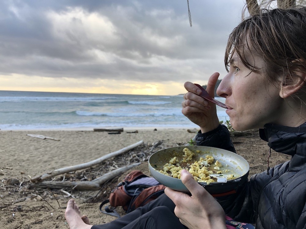 A lightweight cook set is paramount for backpacking adventures like this one. Here we take an adventure, trying to find privacy on a remote beach in Hawaii. Packed with us is the GSI Glacier 1 person set. Credit: Amber King