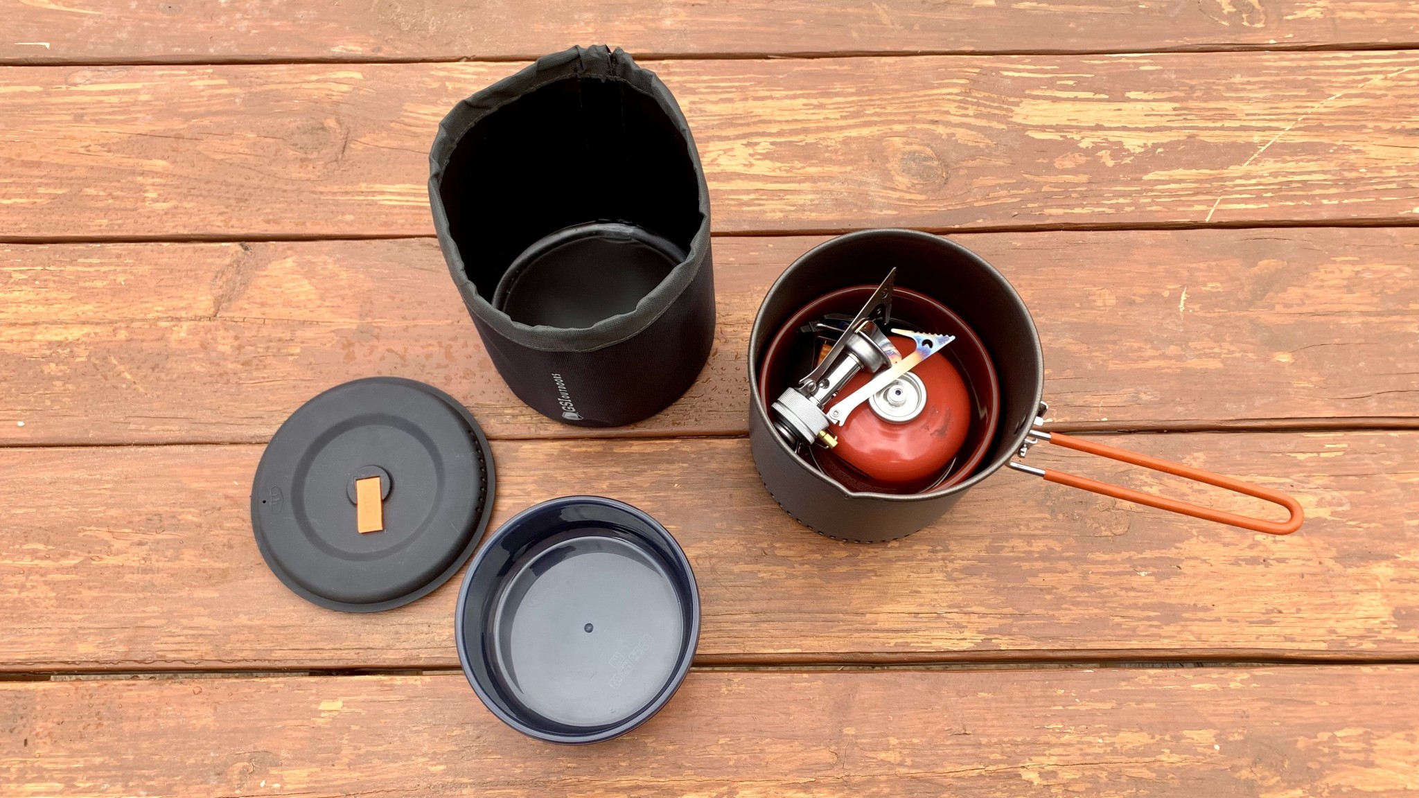 The Snow Peak Ti-Mini Solo Combo 2.0 is a sleek, lightweight, and versatile little solo backpacking system that quickly became the go-to for our testing team. Credit: Trish Matheny