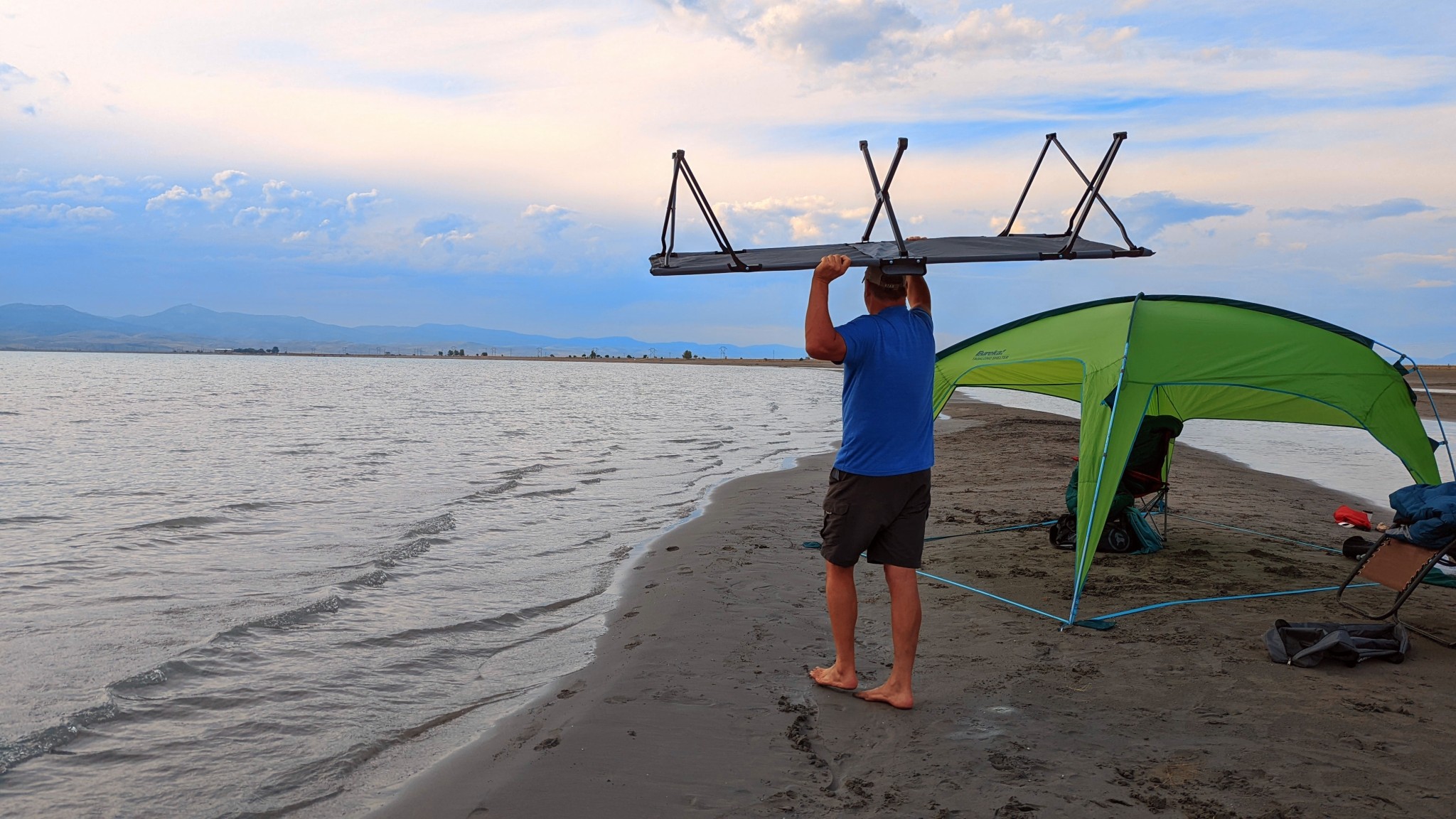 From beaches to campgrounds, we snoozed a lot while on the job in order to find the cots that worked the best. Even quick naps on the shoreline were included in our notetaking. Credit: Jason Wanlass