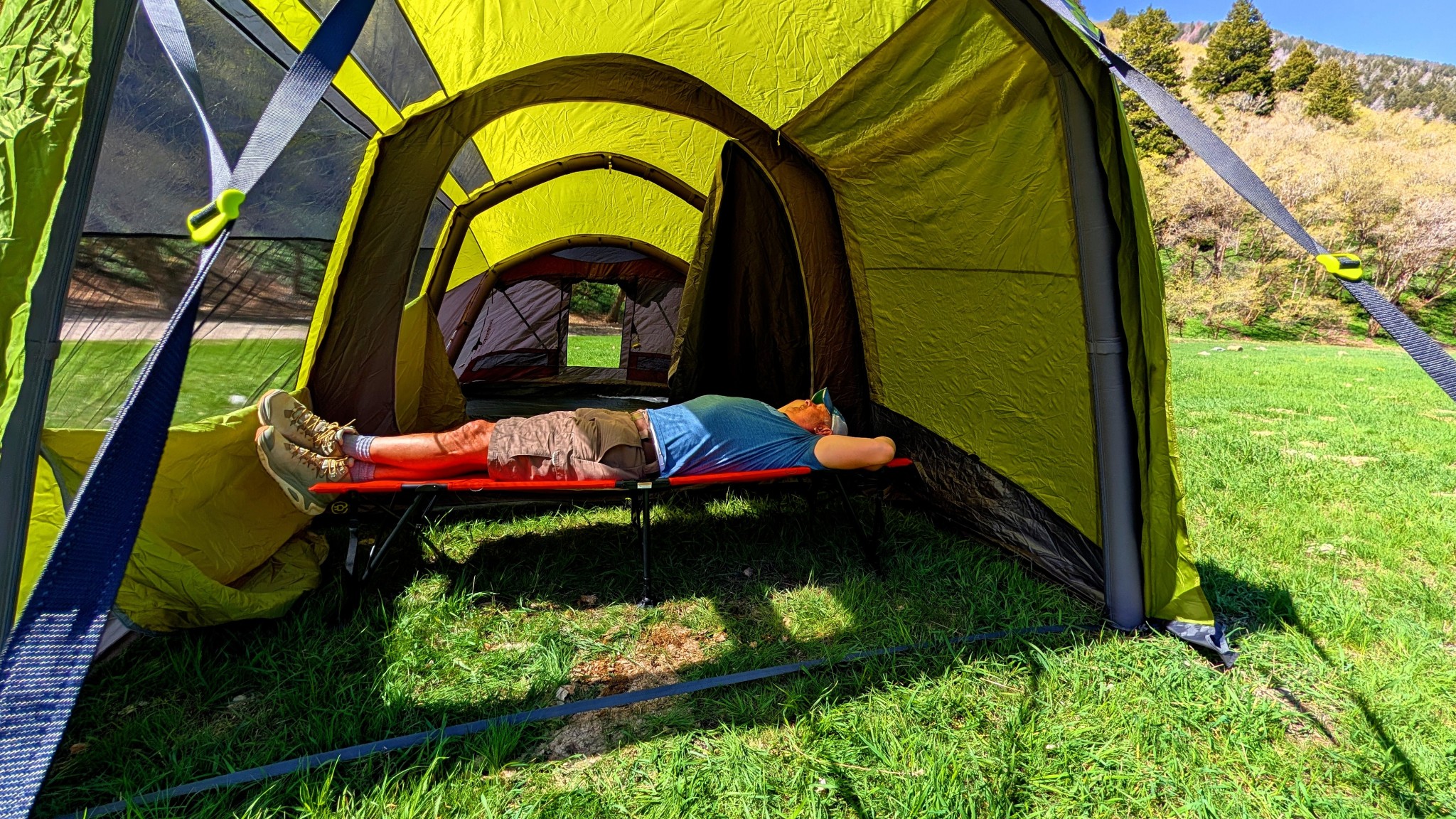 We love the ability to just chill at camp on our Converta Cot. We also love its amazing price point. Credit: David Wise