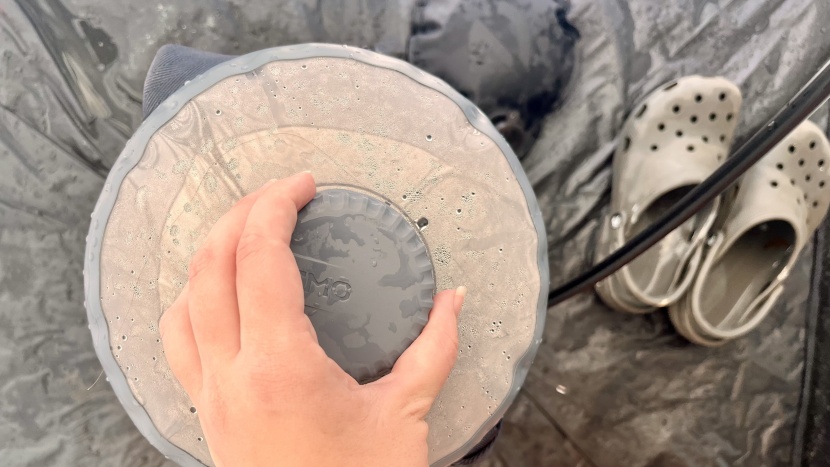 While not quite as simple as the Helio, the Spopal was set up in no time. Connecting all of the bits and pieces is very intuitive, and there are directions as well as plenty of YouTube videos online to check out if for some reason you find yourself lost in the assembly. Once we had it all put together, we got out our bucket, filled it with water, and placed the unit inside. The suction cups on the bottom of the pump also securely attach to the bottom of the bucket. Our only gripe—we had to heat the water ourselves.