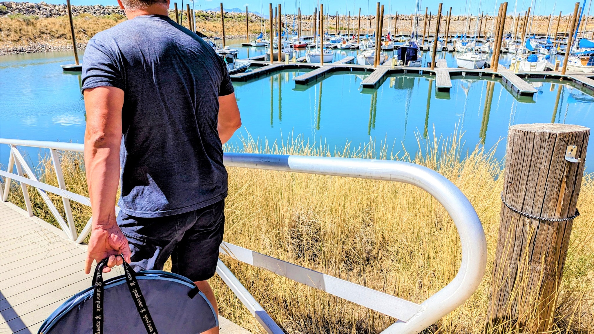Headed for the marina with our Snow Peak in tow. Its grab-and-go design makes it perfect for nearly any adventure. We just wish it had an optional shoulder strap. Credit: Jason Wanlass