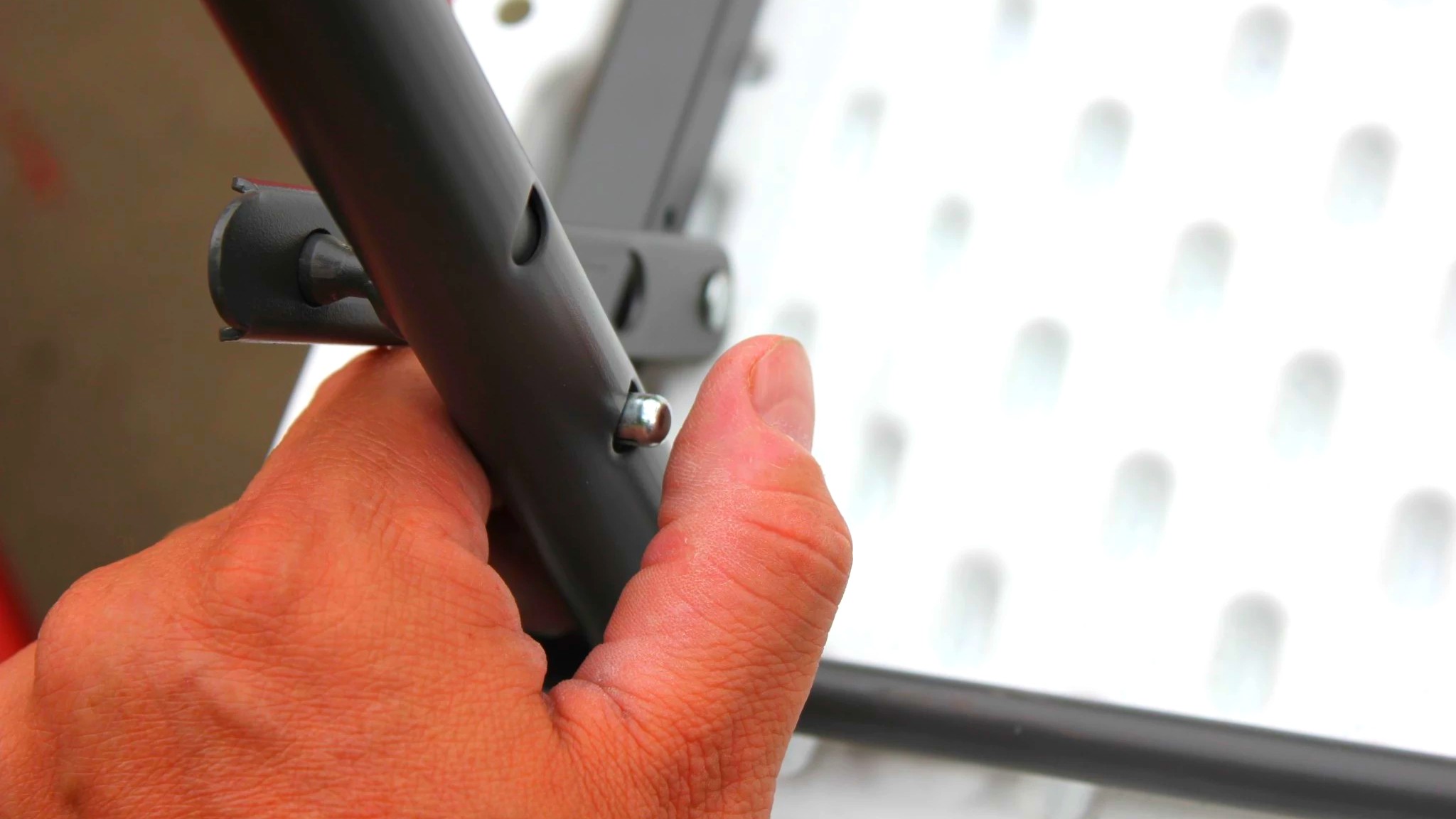 The Lifetime table uses an old-school pin system for locking the height of the legs into place. While not the easiest way to move the legs, the system is durable and strong. Credit: Jason Wanlass