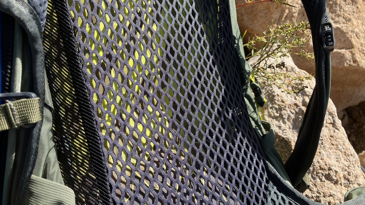 The Zulu's suspended mesh panel. You can see how the pack's body sits off the back, allowing air to flow between our back and the pack. Credit: Tara Reddinger-Adams