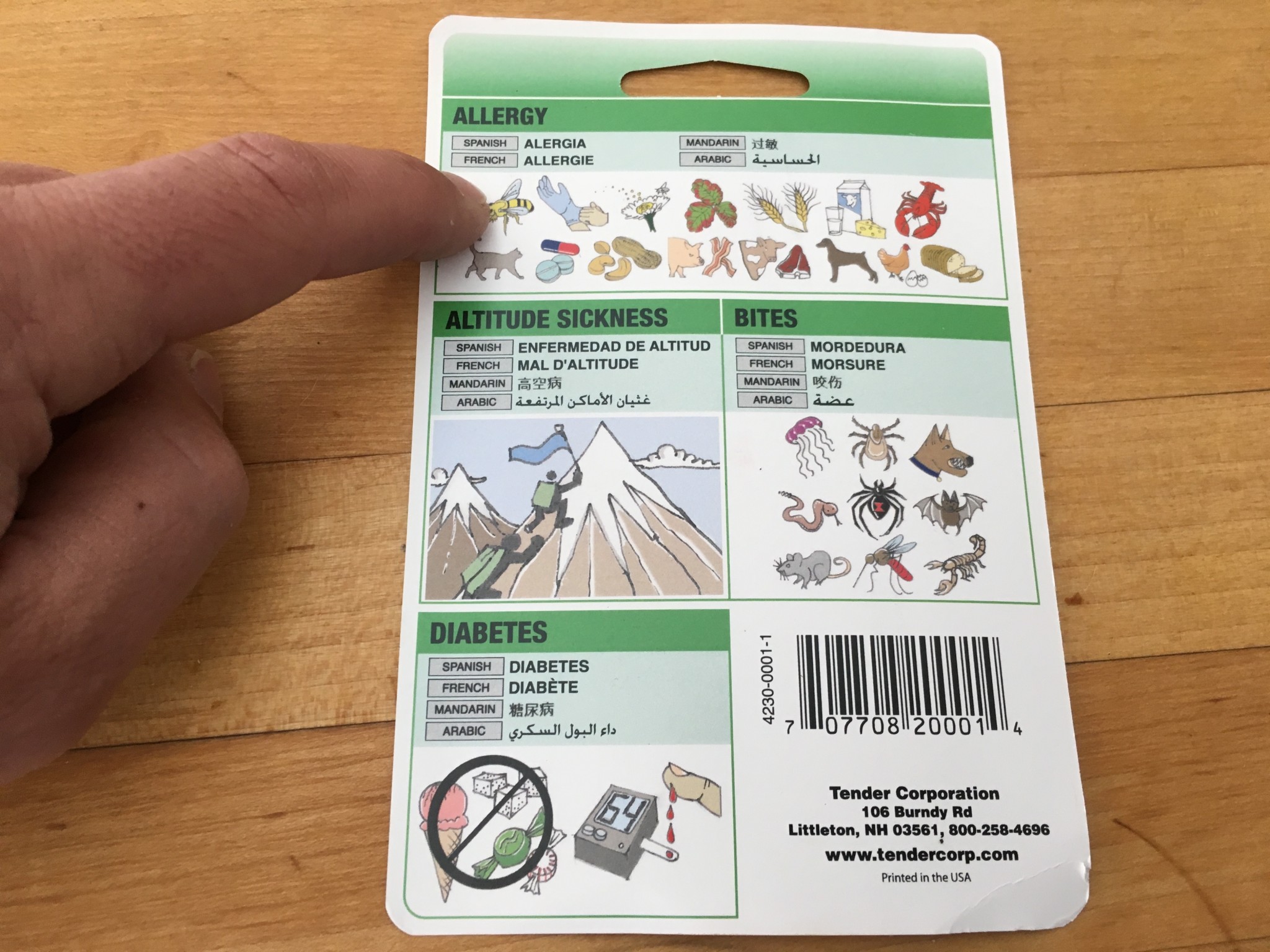 The AMK Smart Travel kit comes with a card that can help you bypass language barriers by pointing to photos referencing specific illnesses or injuries. Credit: Ryan Huetter