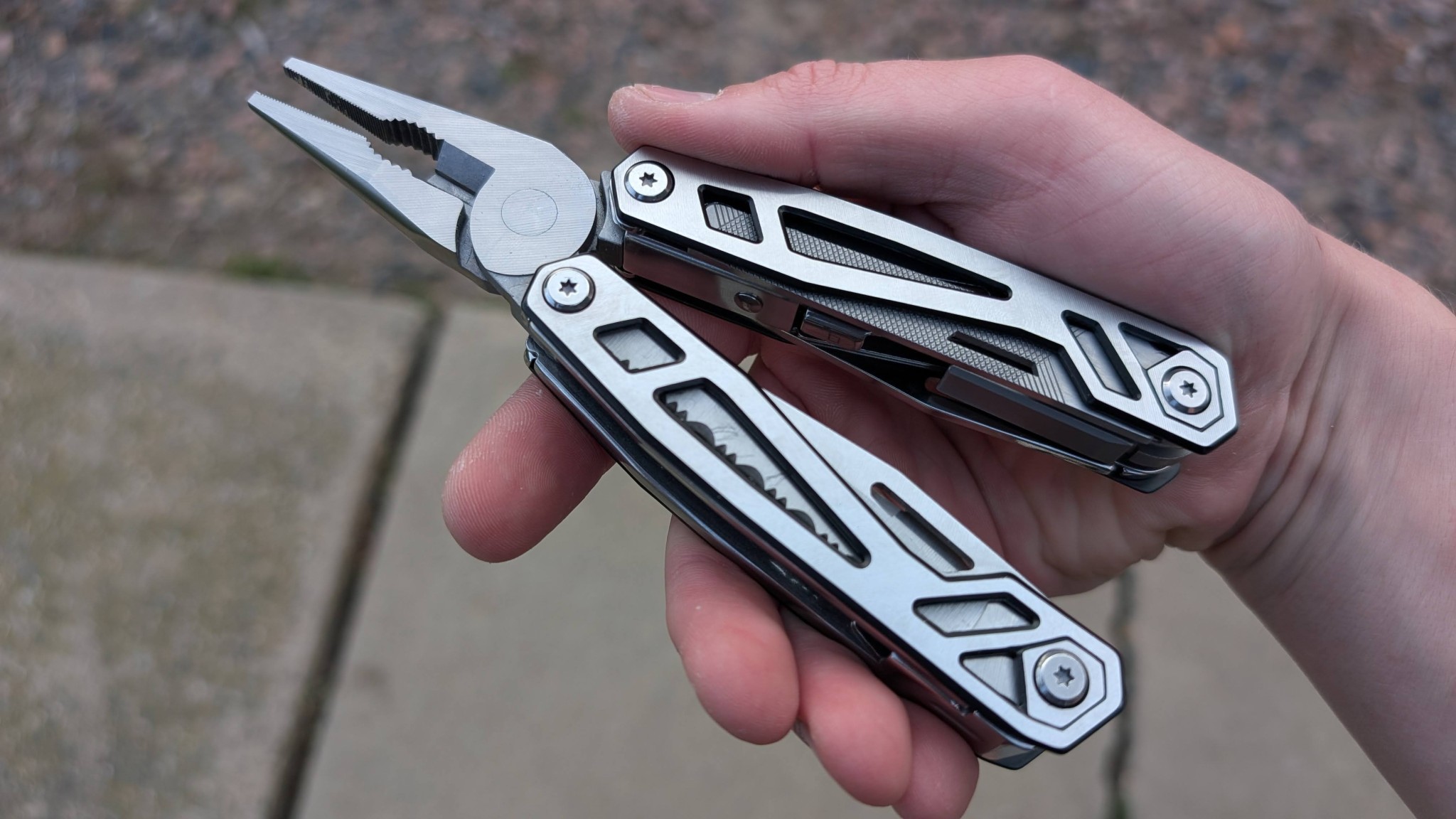 The ETEH Multi Tool has some truly unique pliers. They fold out like any other tool, not the full butterfly-style, dual handles you see on traditional multi-tool designs. Credit: Kyle Hameister
