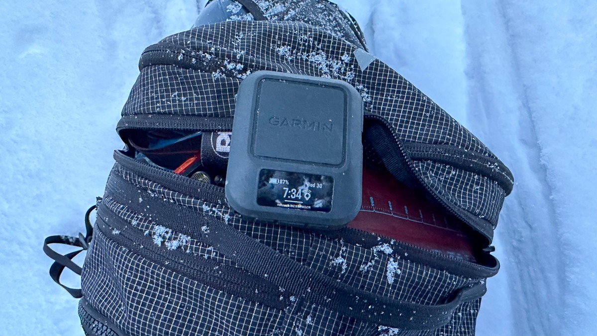 Garmin inReach Messenger Pus in action. You could (and should) store the device itself inside a zippered, secure pocket in the top of your pack Credit: Jediah Porter