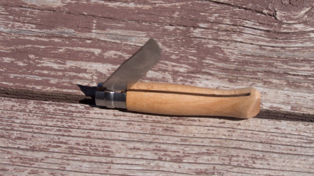 Here the “Virobloc” ring of the Opinel is turned to allow the blade to close and open through its slot. Credit: Jediah Porter