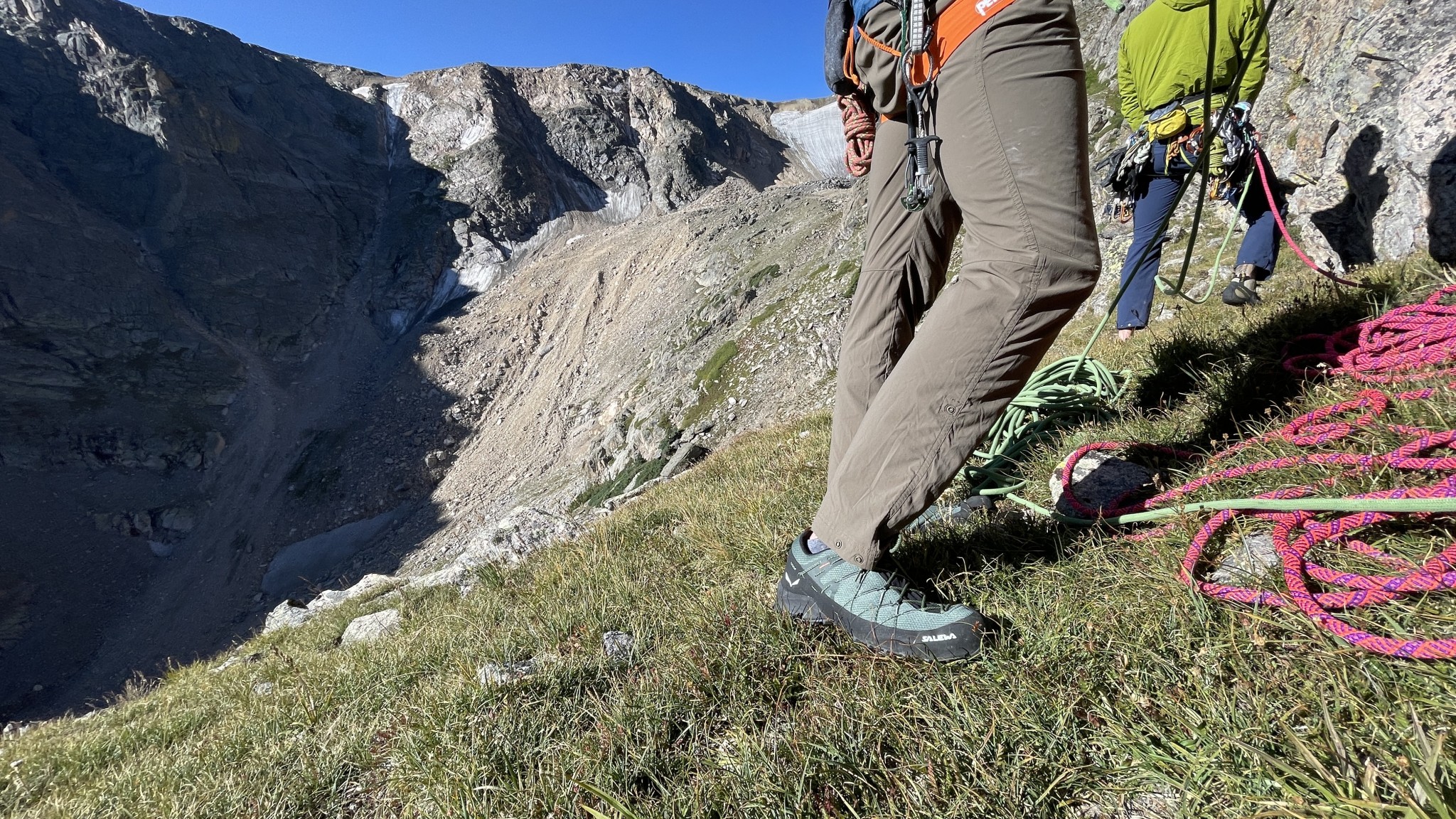 We walked, hiked, and slogged to crags and through alpine valleys with light packs for climbing or heavy packs for search and rescue missions. We made careful note of instability, sore arches, and rocks entering around the cuff. If your feet already hurt before you get to the climb, putting them in climbing shoes isn't going to make them feel any better.