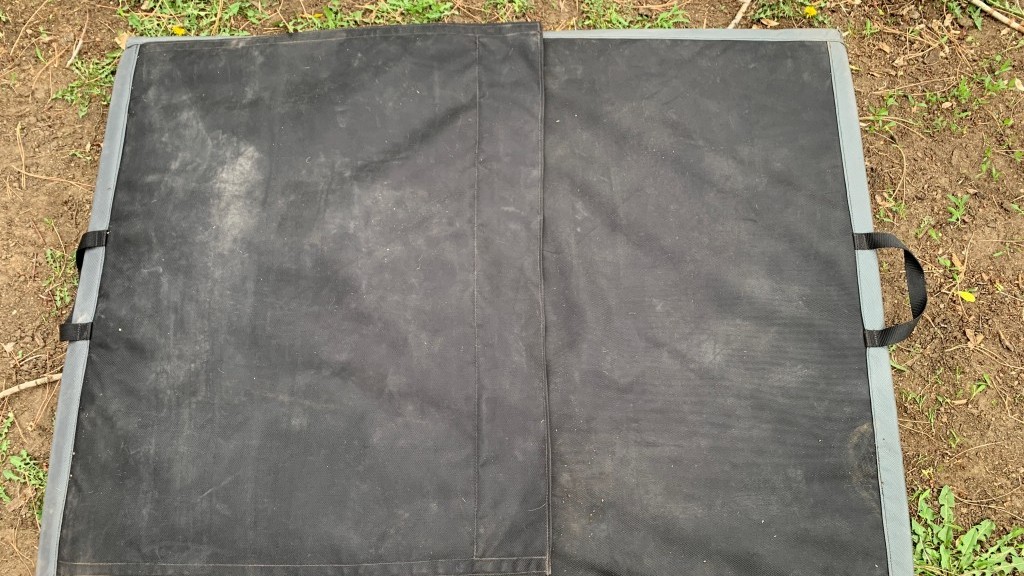 When bouldering above uneven terrain, sometimes the best pad for the job is a tri-fold option, like the Black Diamond Circuit Z, that features more narrow panels to better pad your landing zone. Credit: Trish Matheny