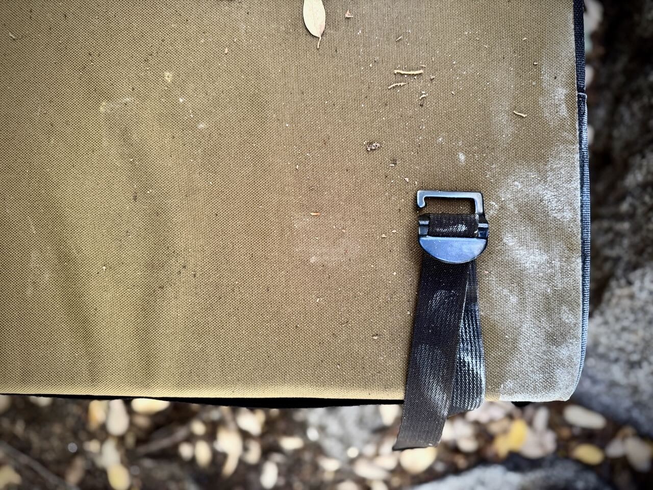 The Black Diamond Erratic is among the more durable outer shells that we tested thanks to Dynex grid fabric combined with a water-resistant TPU coating to protect the interior foam even during inclement weather. The corners of the pad are also substantially reinforced to prevent any wear and tear during falls in areas with sharper rock beneath the landing zone or snags during more technical approaches. While the shell is durable, it is also slippery and we found it difficult to keep the pad in place while protecting slanting boulders in the landing zone.