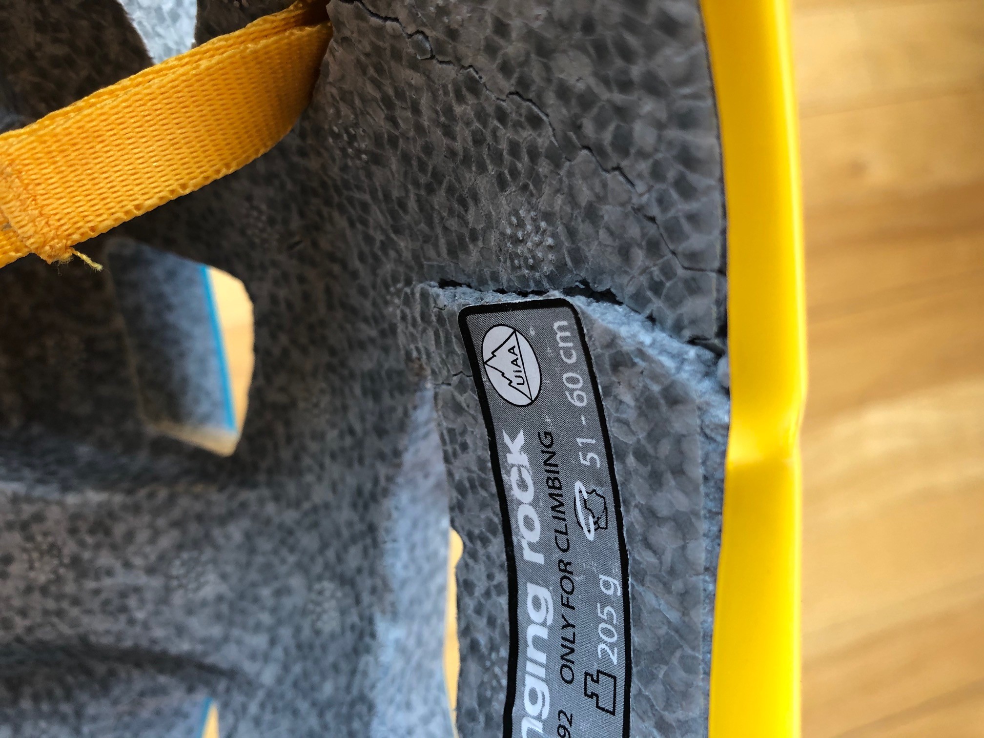 Expanded Polypropylene (EPP) is a very similar material to EPS, except that its manufacturing process is proprietary. In stark contrast to EPS, it is softer and more rubbery, and not instantly crushable, meaning it can absorb more and softer blows without needing to be retired. Worth mentioning is that a very hard impact will still likely permanently damage it, so consider retiring an EPP helmet after a hard blow. EPP is most often used on the sides of a helmet to provide more protection against hitting your head on the wall when falling and is less often used on the top of the head to absorb impacts from rocks.