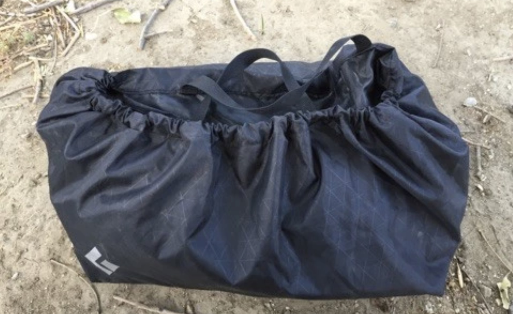 There are a few downsides to the Black Diamond Full Rope Burrito. For instance, it lacks carrying straps besides simple handles, so one must carry it inside a separate crag pack. If you have a small crag pack, it might not fit. Also, it doesn't come with any extra pockets for carrying items like some other models offer. Basically, it is not a self-contained pack. Instead, it serves as a lightweight, bare-bones, simple rope bag and tarp. If that's all you need, we wouldn't point you in any other direction.
